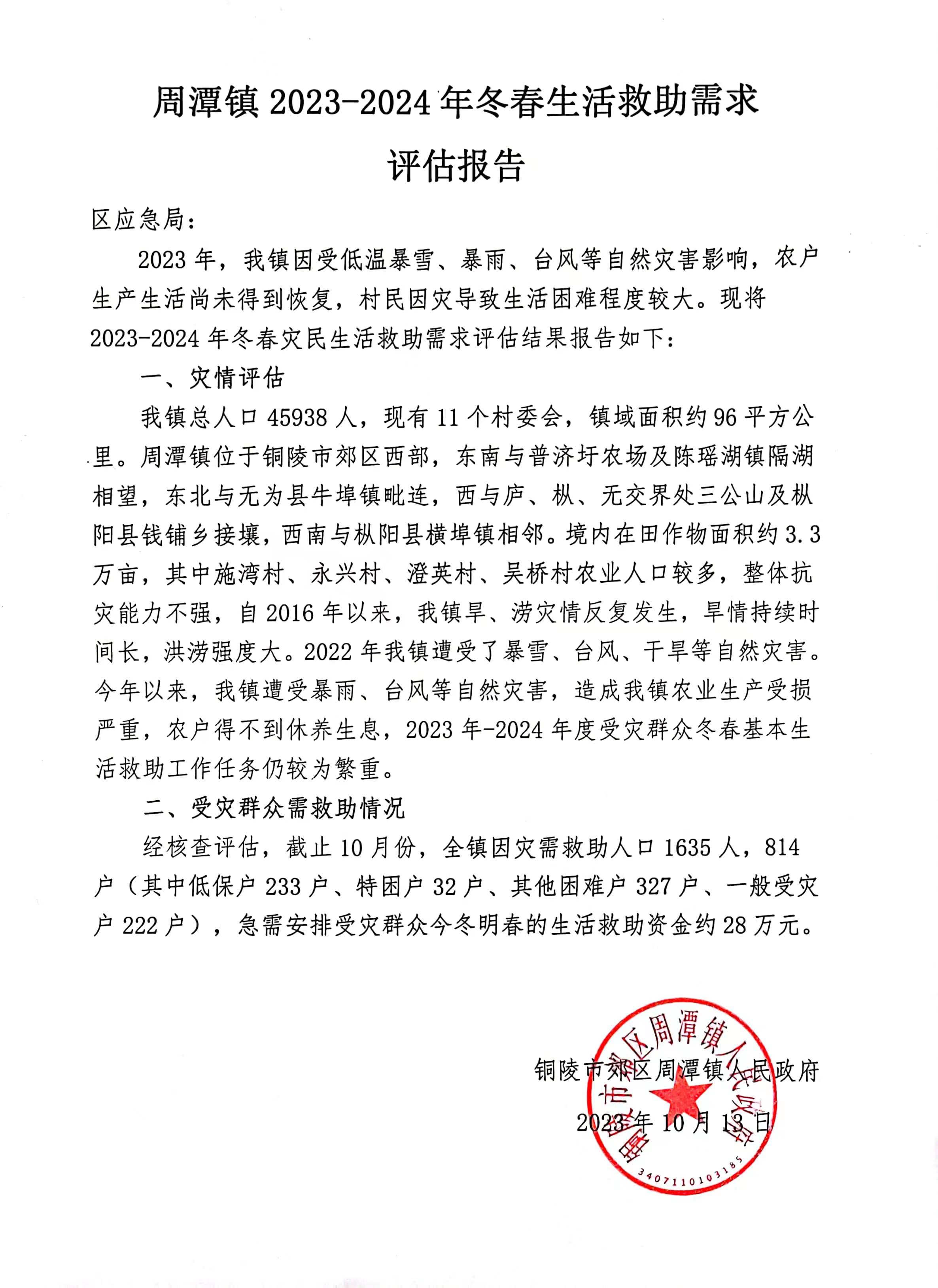 周潭镇2023-2024年冬春生活救助需求评估报告