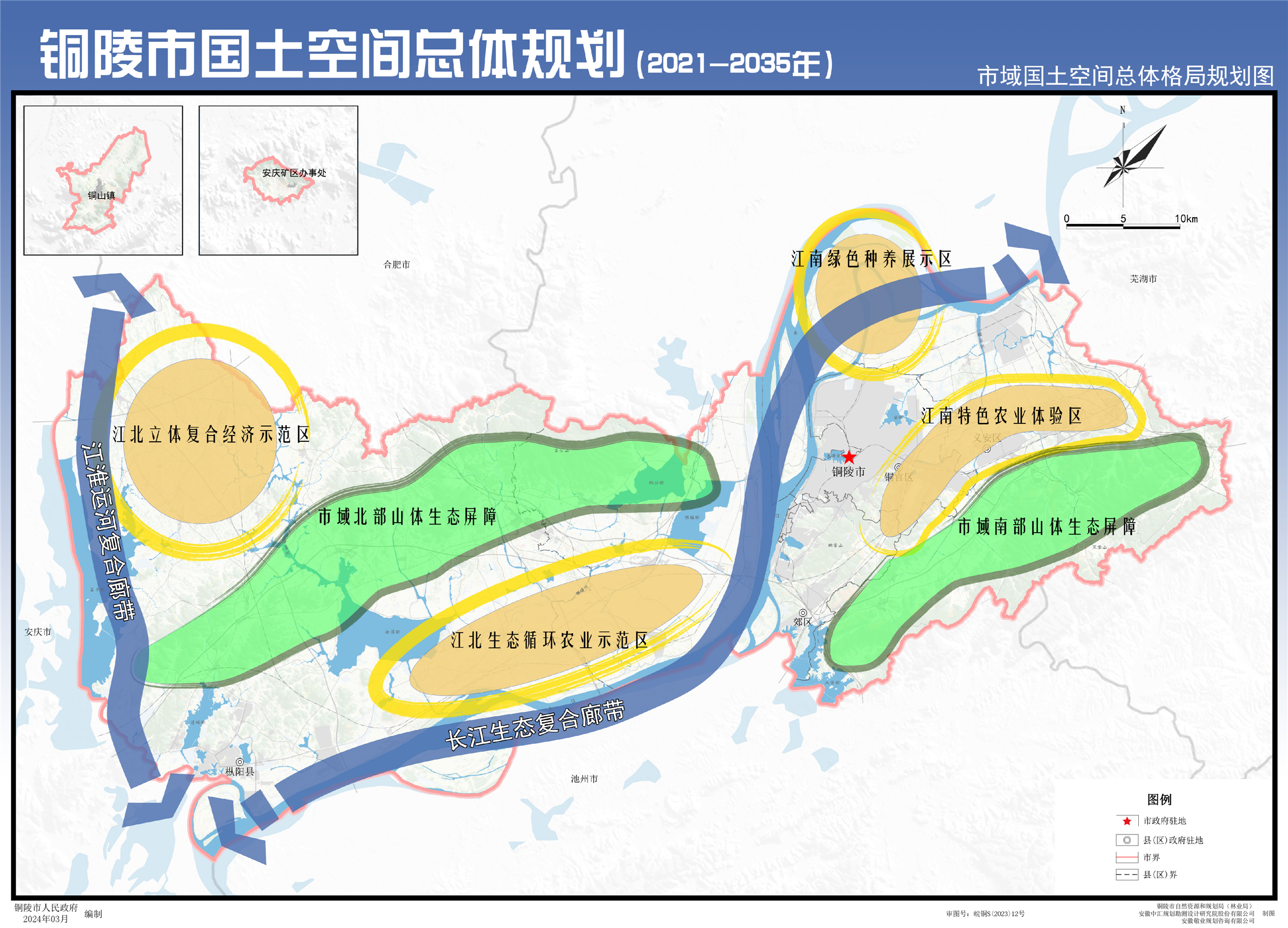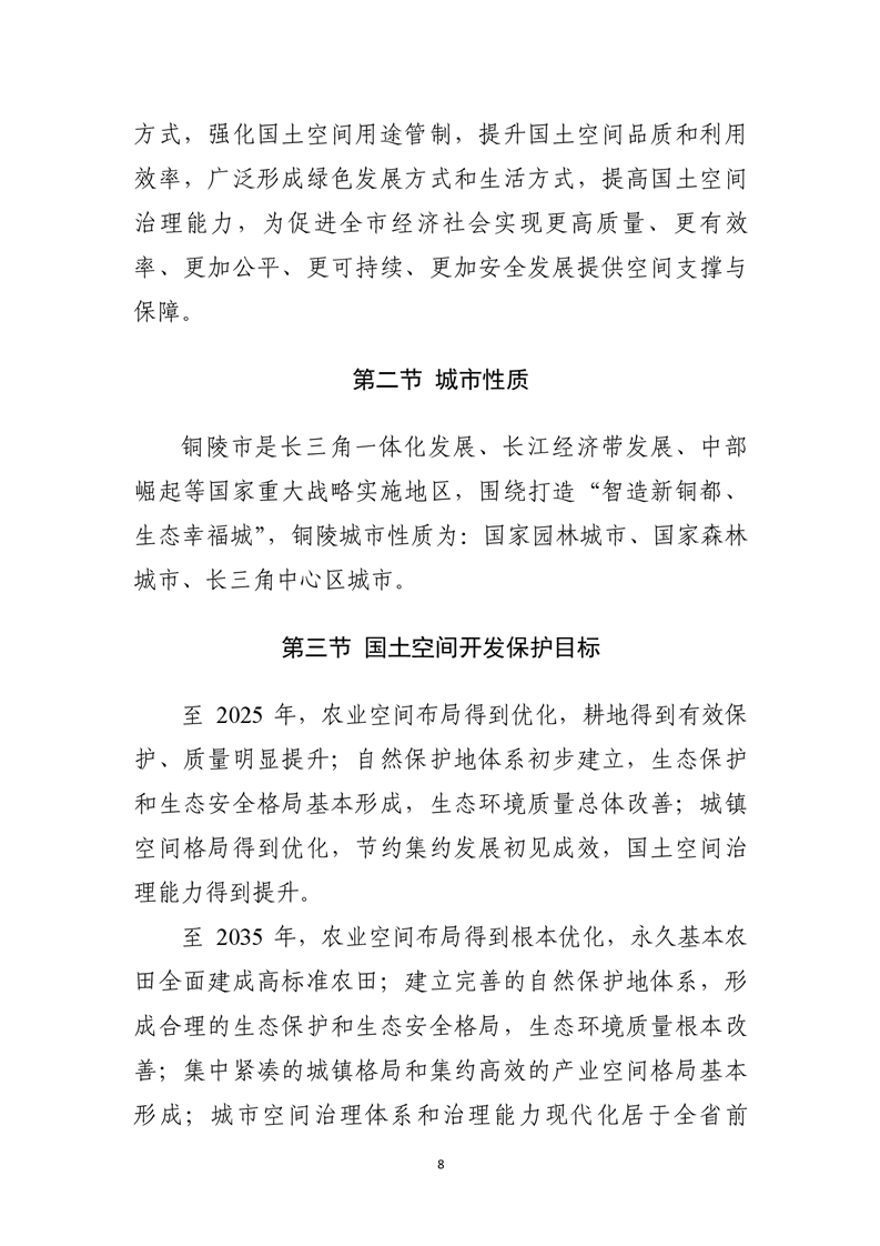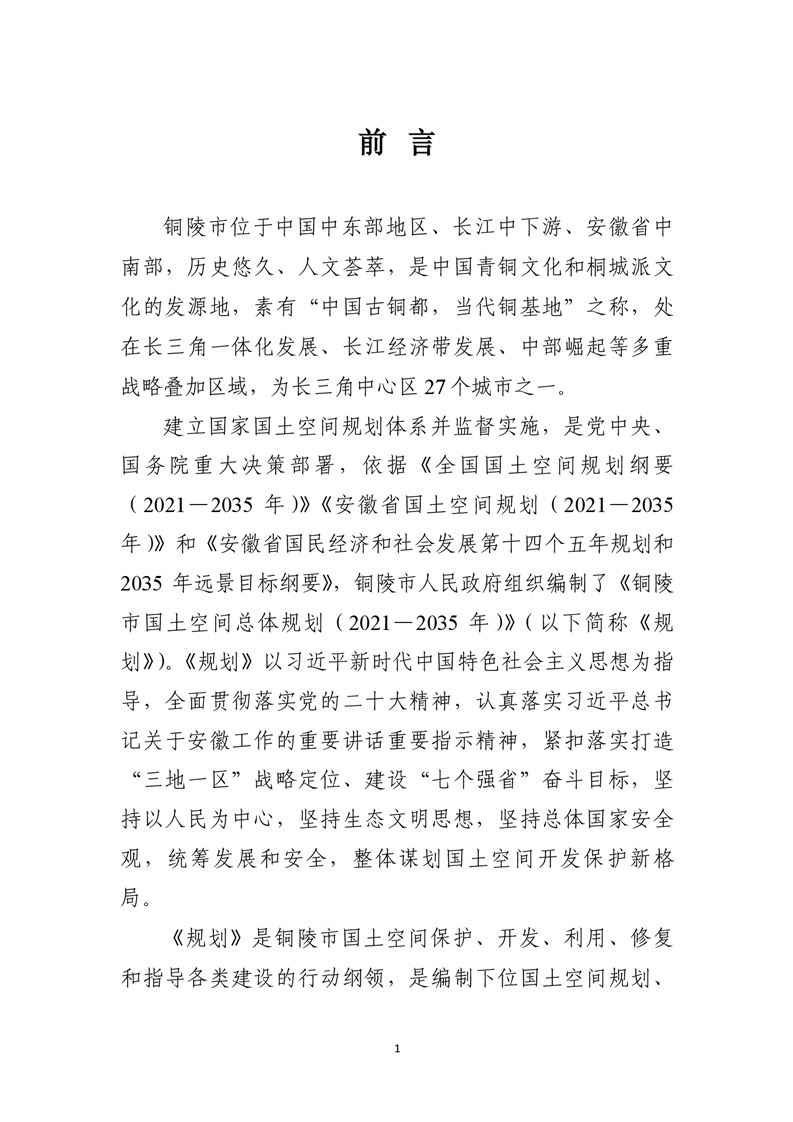根据《中共中央 国务院关于建立国土空间规划体系并监督实施的若干意见》(中发〔2019〕18号)等文件精神,我市组织编制完成的《铜陵市国土空间总体规划(2021-2035年)》已经安徽省人民政府批复同意,根据有关法律要求,现将规划主要内容公开如下:
