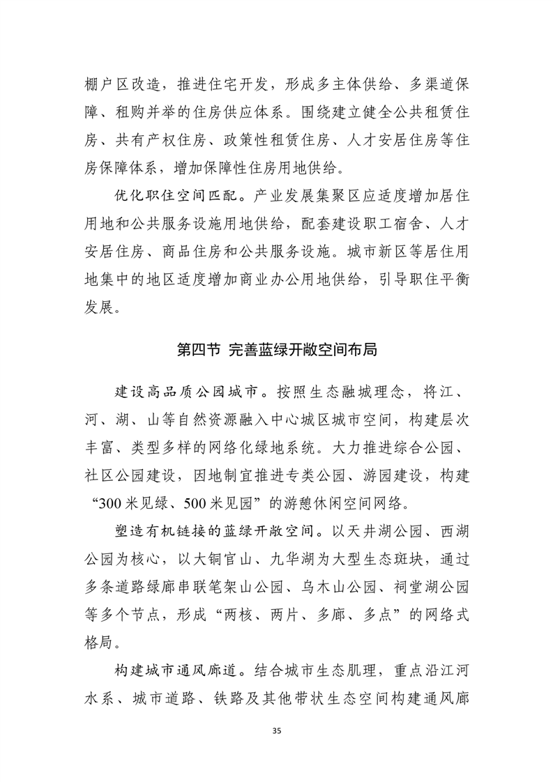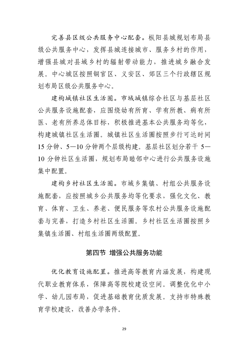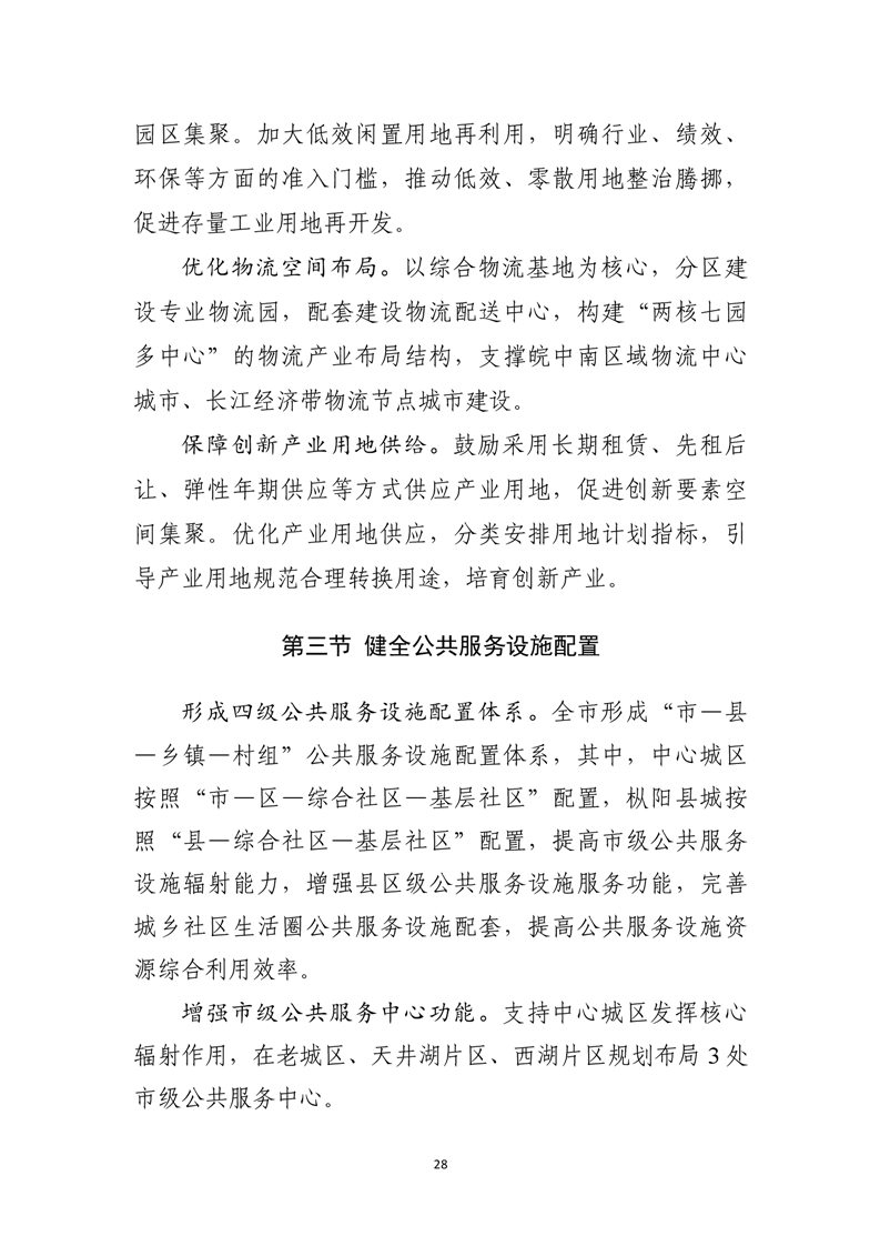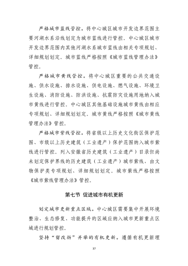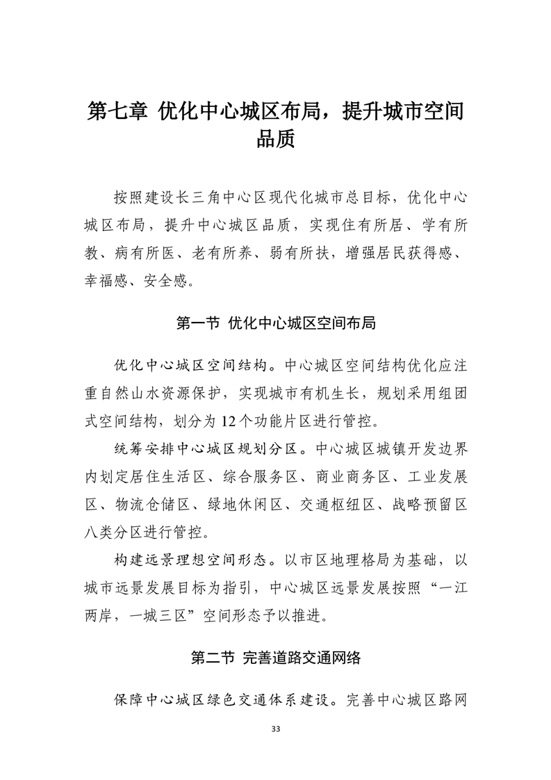 优化中心城区空间结构和用地布局,形成组团式空间结构。统筹安排公共服务设施布局,合理安排居住用地,推进社区生活圈建设。严格城市四线管控,系统建设公共开敞空间,稳步推进城市更新,合理利用城市地下空间。