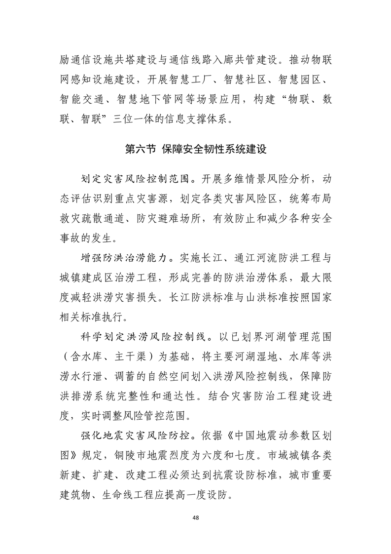 强化区域交通基础设施互联互通,完善城市快速路、主干路网布局,促进市域交通一体化发展,构建内联外畅的综合交通体系。完善市政基础设施布局,全面提升基础设施综合承载力。提高防灾减灾标准,合理布局防灾空间和设施,提升城市安全韧性。