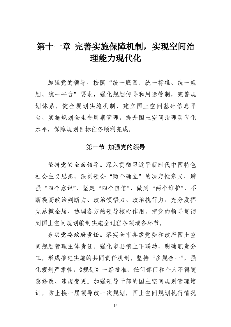 加强党的领导,完善规划实施政策和项目保障机制,依托统一的国土空间基础信息平台,实施规划全生命周期管理,全面提升国土空间治理体系和治理能力现代化水平。