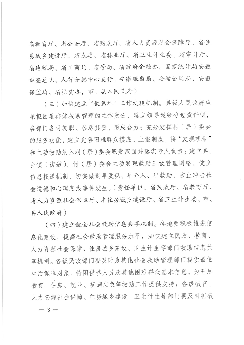 安徽省人民政府关于贯彻落实《社会救助暂行办法》的实施意见(皖政〔2014〕83号)
