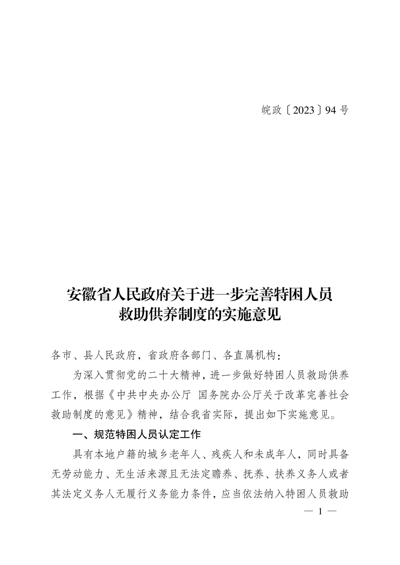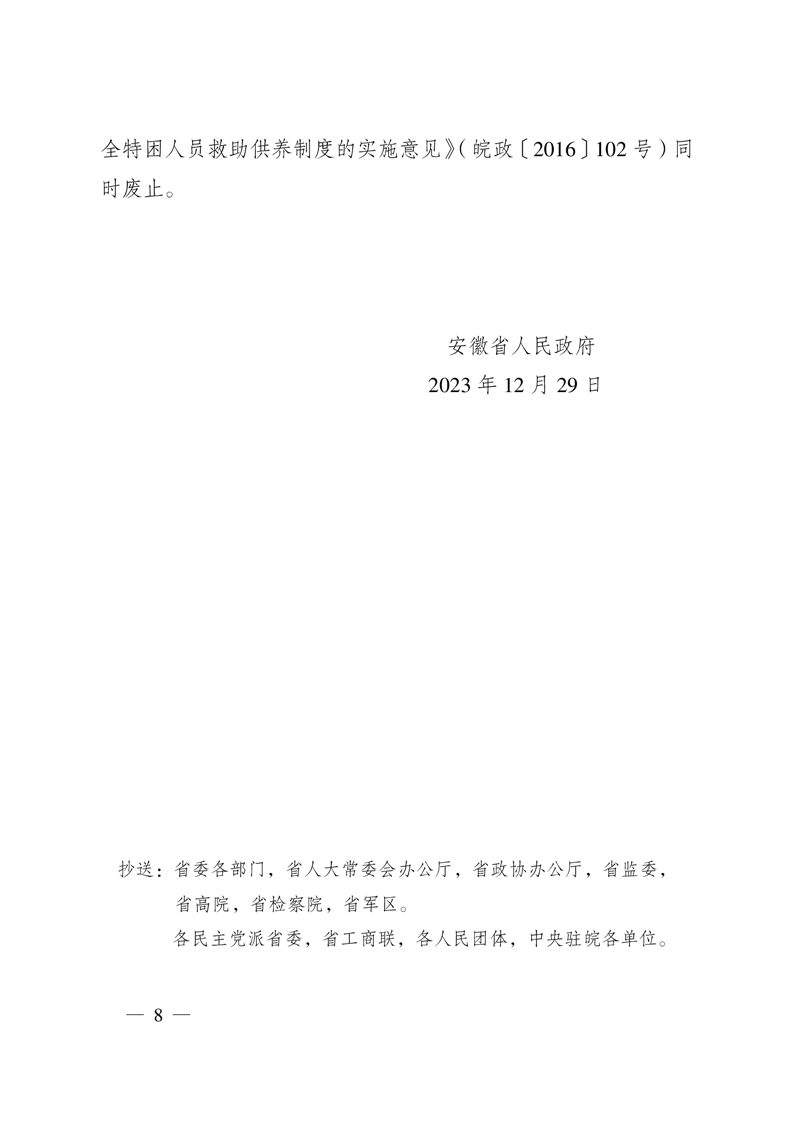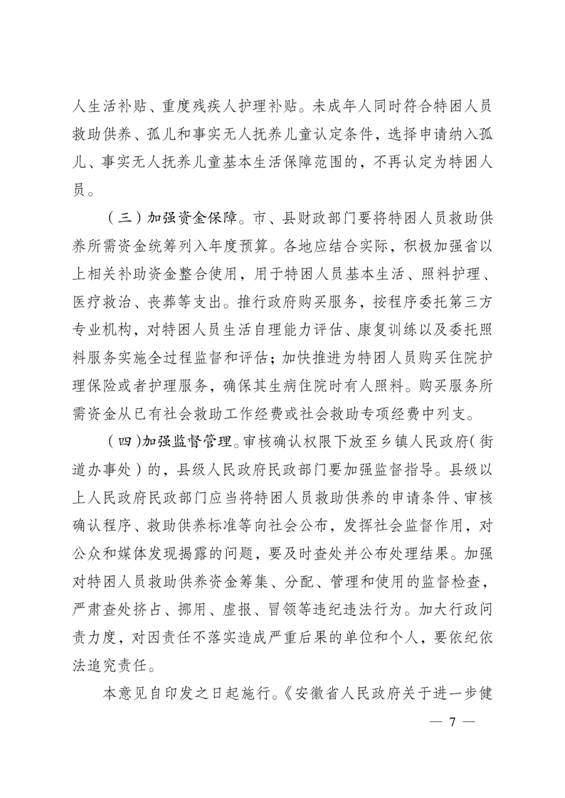 【上级政策文件】安徽省人民政府关于进一步完善特困人员救助供养制度的实施意见