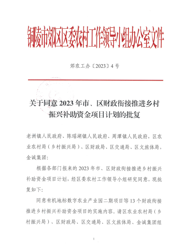 郊农工办〔2023〕4号,关于同意2023年市、区财政衔接推进乡村振兴补助资金项目计划的批复