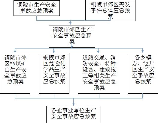 本预案为铜陵市生产安全事故应急预案,与非煤矿山、危险化学品、道路交通、消防安全、特种设备、建设工程等相关专项应急预案、县区生产安全事故应急预案、各企事业单位生产安全事故应急预案等共同组成应急预案体系。