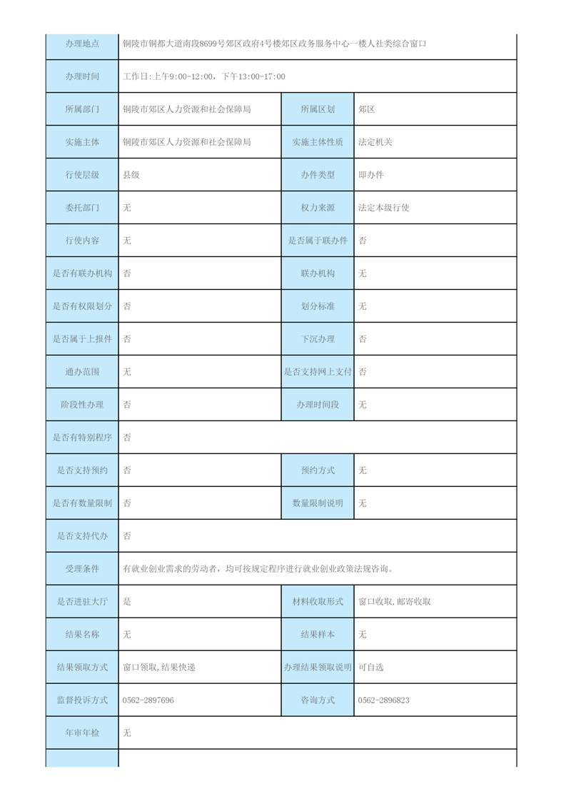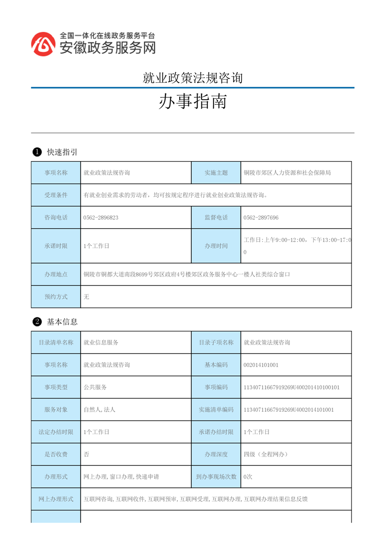 铜陵市郊区就业政策法规咨询办事指南