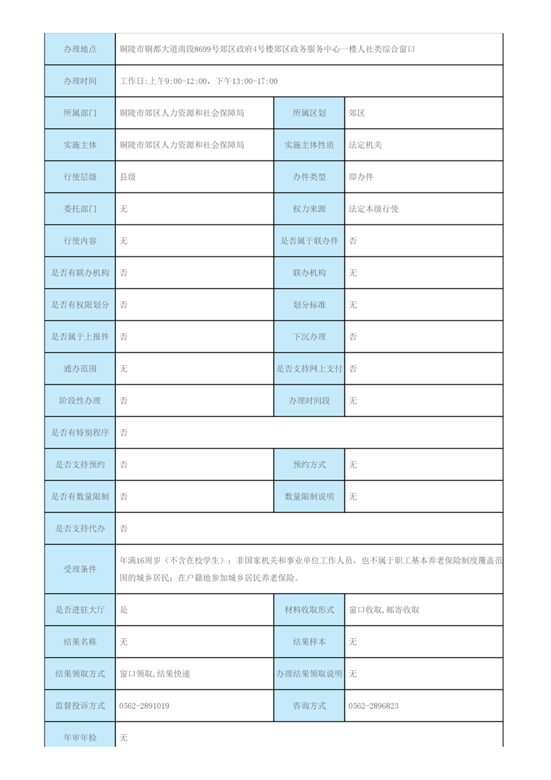 铜陵市郊区城乡居民养老保险参保登记办事指南