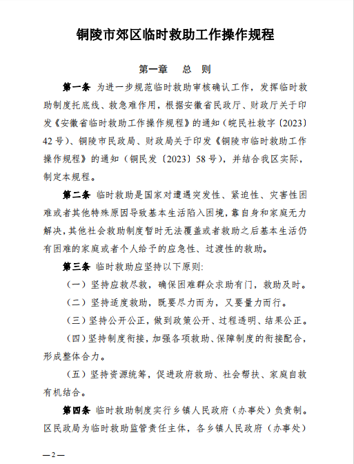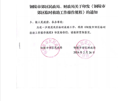 【政策与标准】铜陵市郊区民政局、财政局关于印发《铜陵市郊区临时救助工作操作规程》的通知