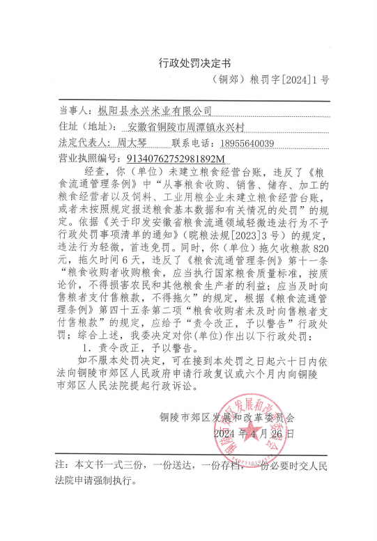 附件:永兴米业案件行政处罚决定书.pdf【417.61 KB】