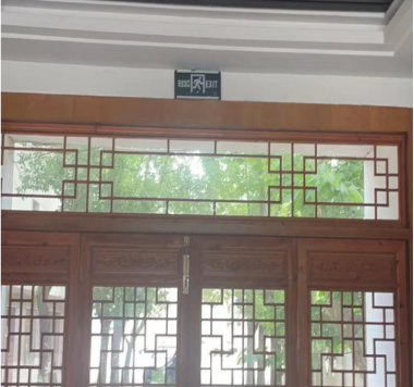2.一层北侧安全出口处疏散指示标志停用;(已完成整改)