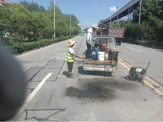 (3)对滨江大道(山水之门至横港小学段)公路病害、坑槽、裂缝进行修复,共计30余处,修复面积约26㎡。如下: