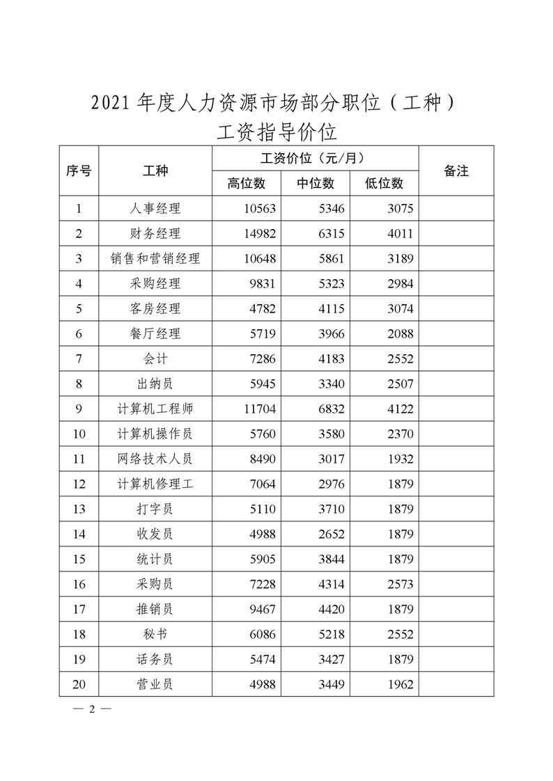 关于发布铜陵市二〇二一年度人力资源市场 部分职位(工种)工资指导价位的通知
