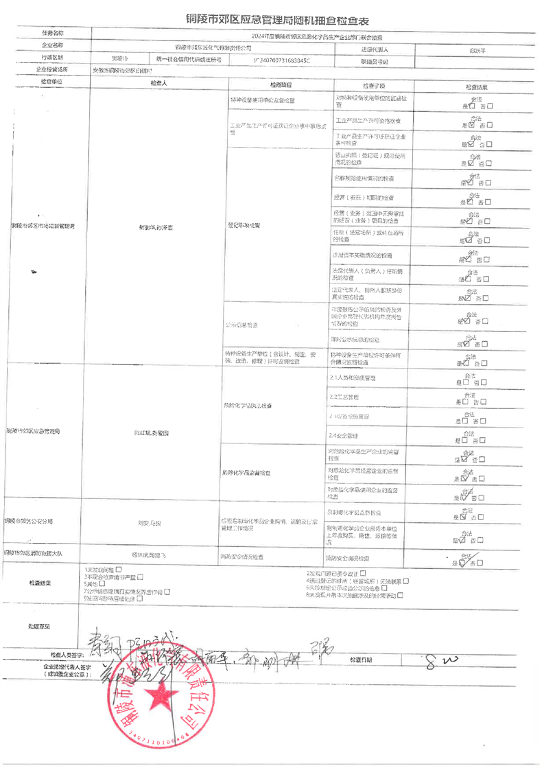 2024年度铜陵市郊区危险化学品生产企业部门联合抽查