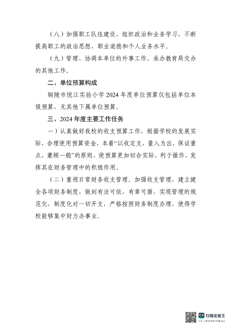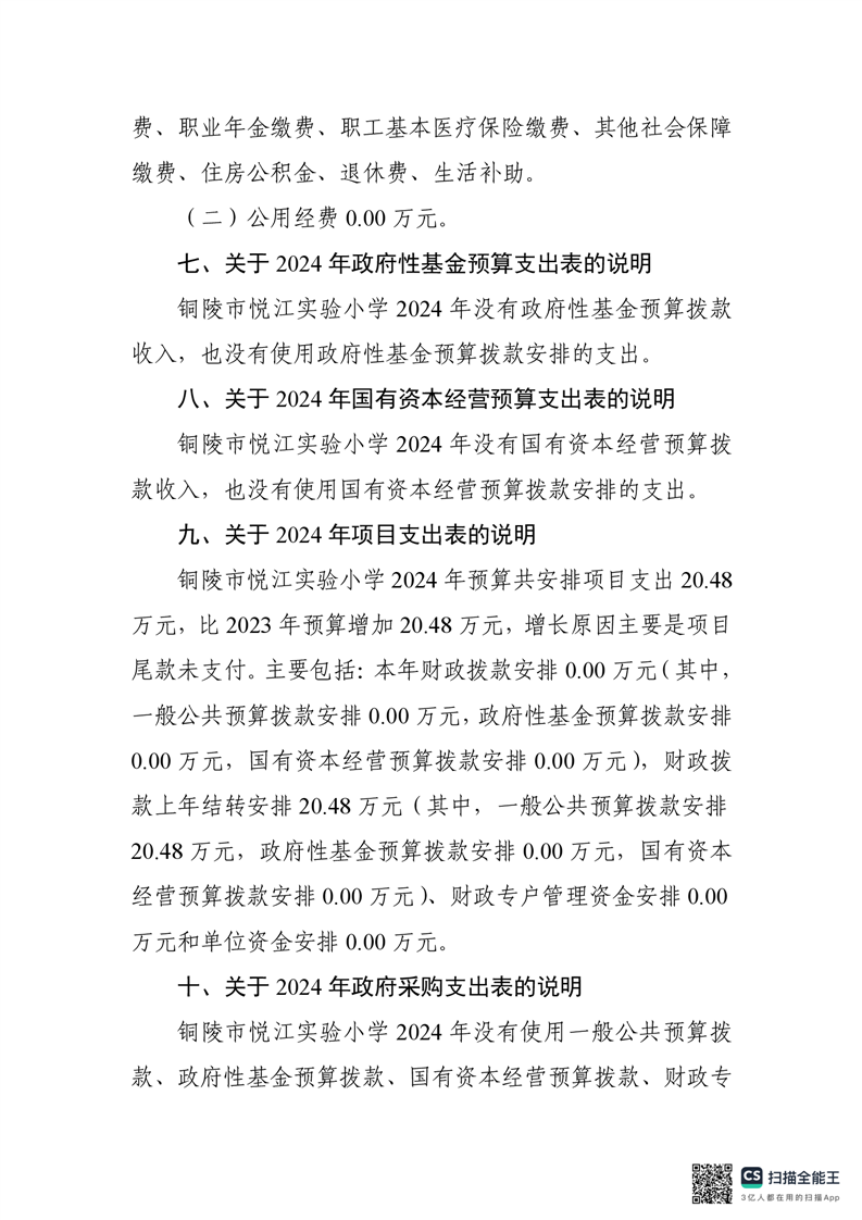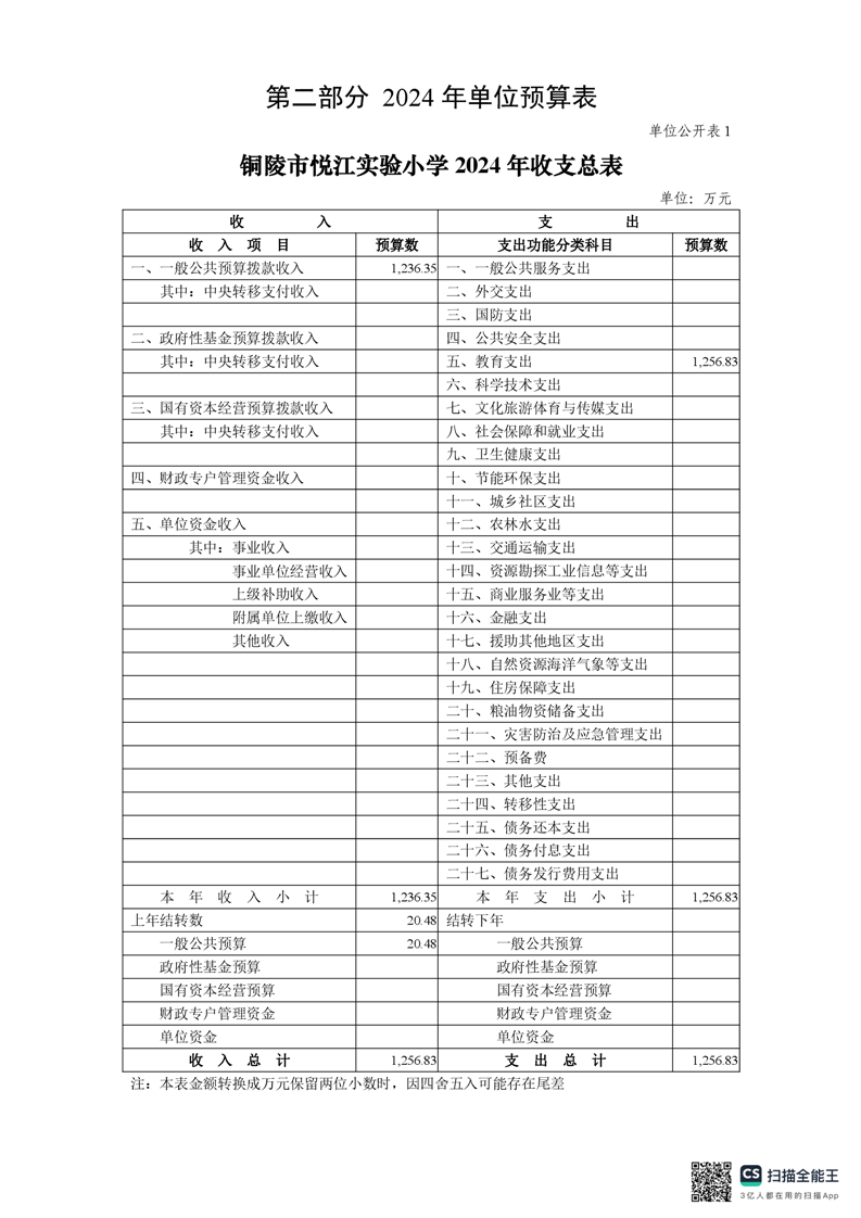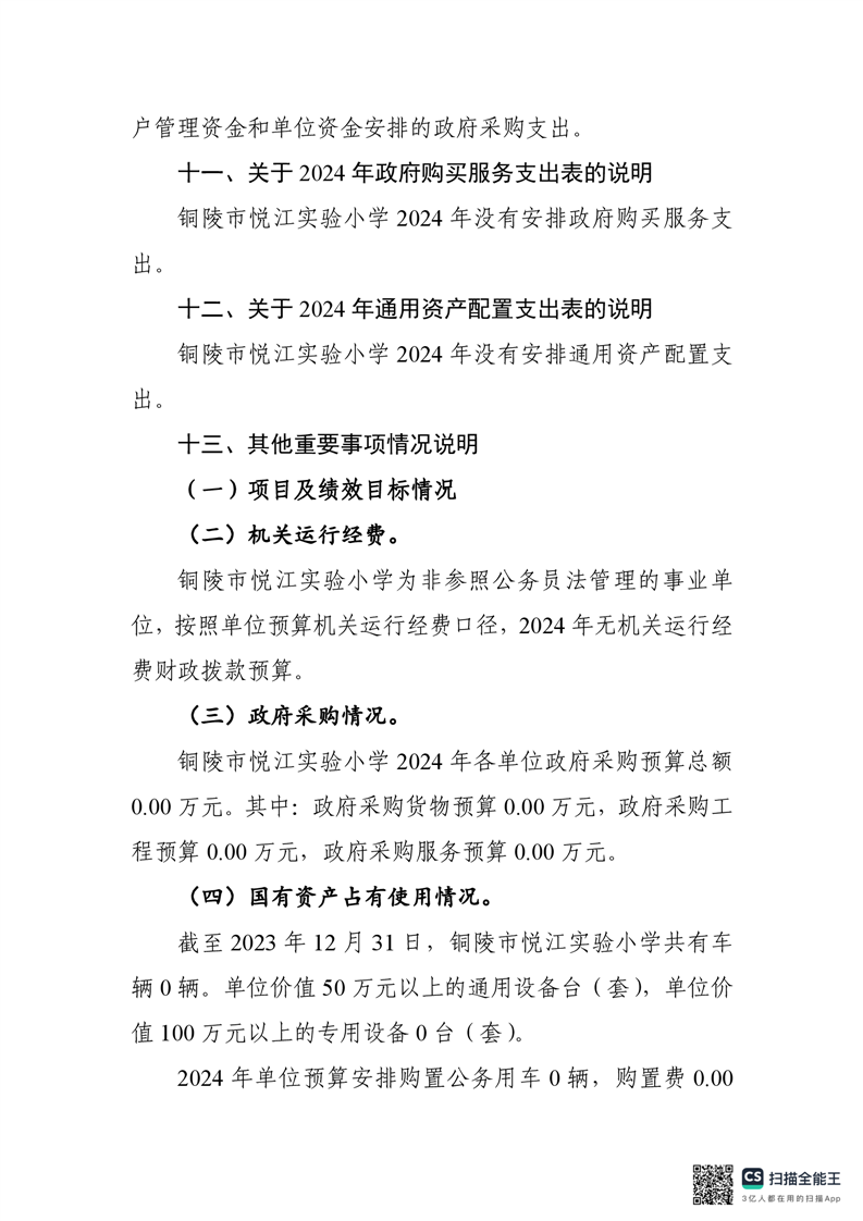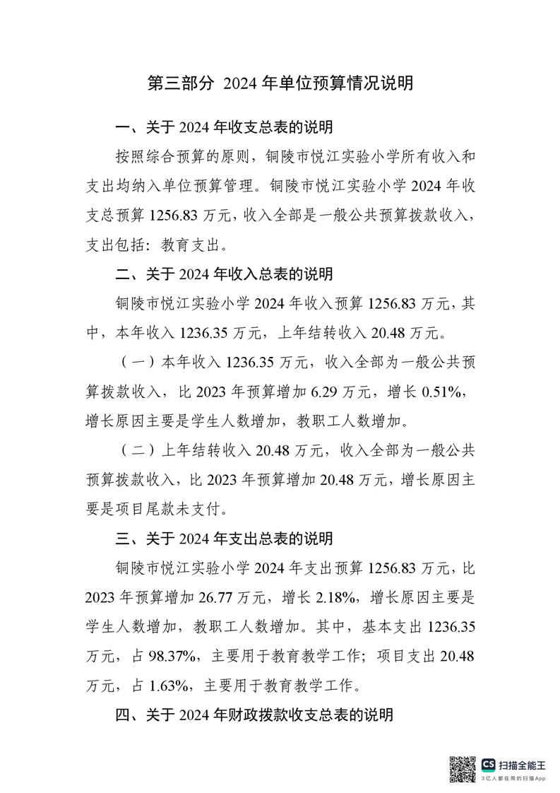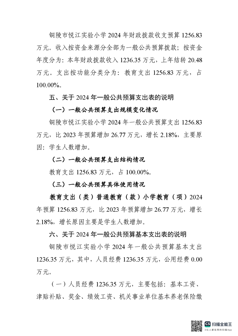 铜陵市悦江实验小学2024年单位预算