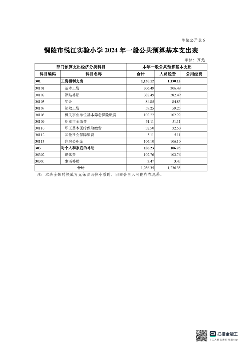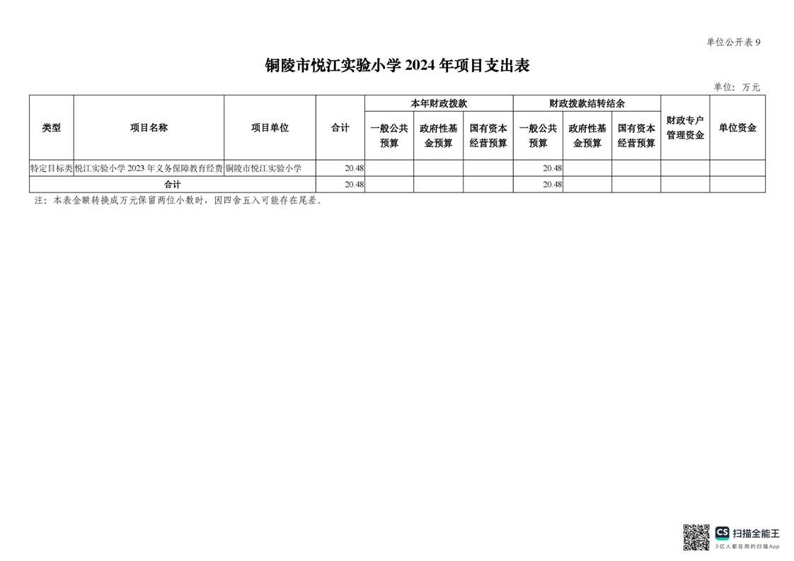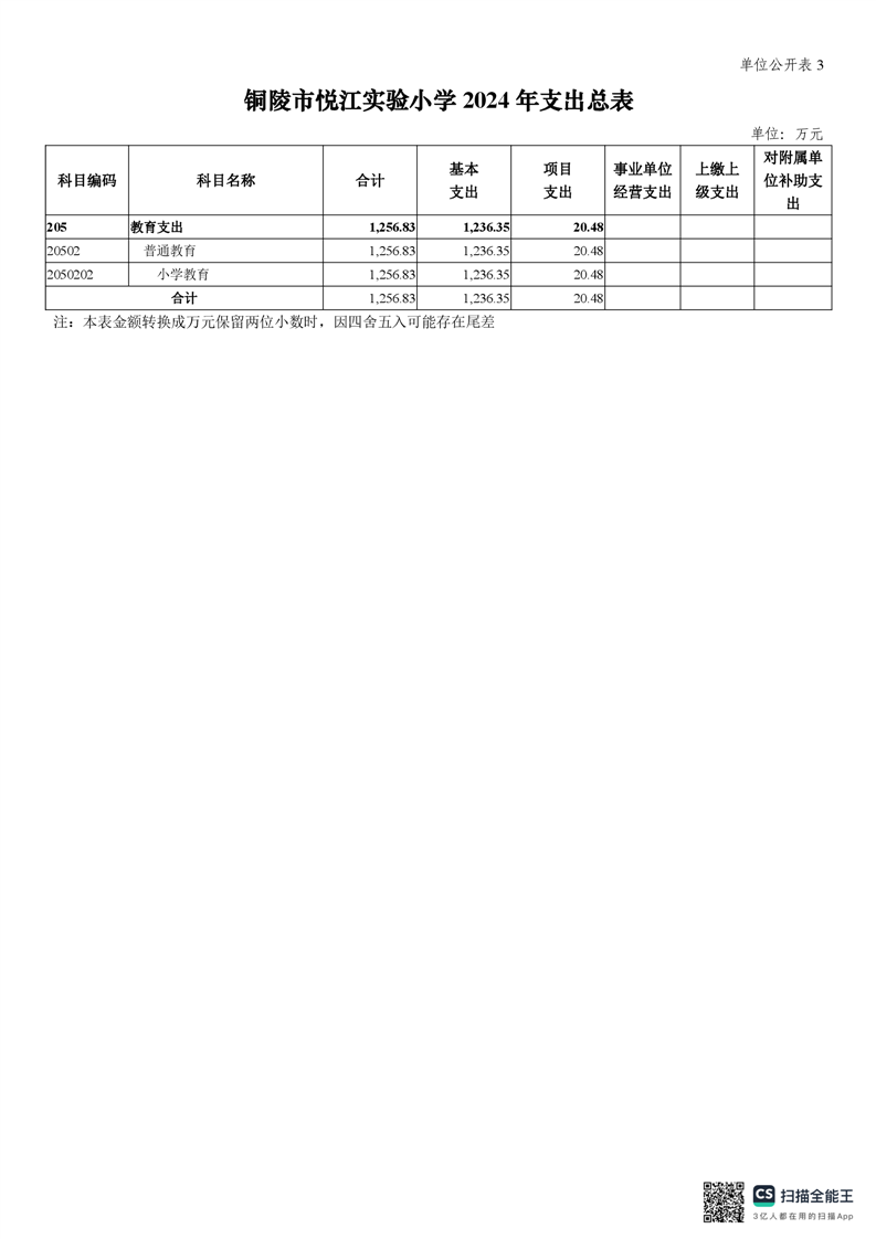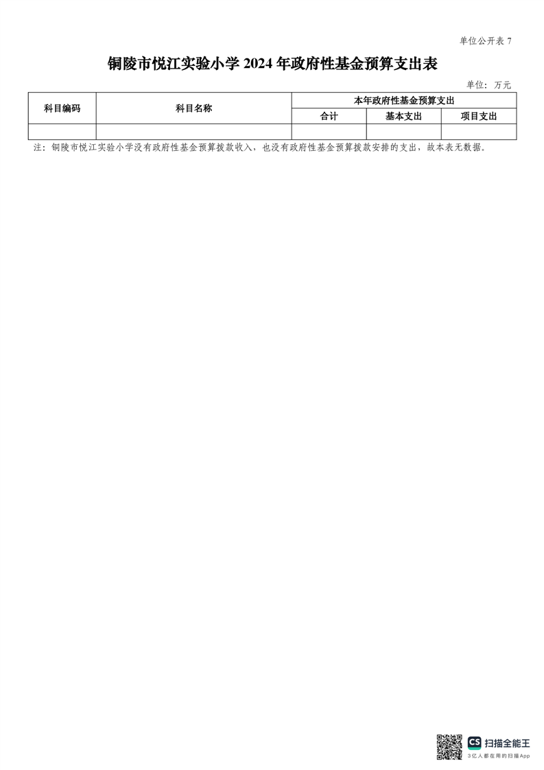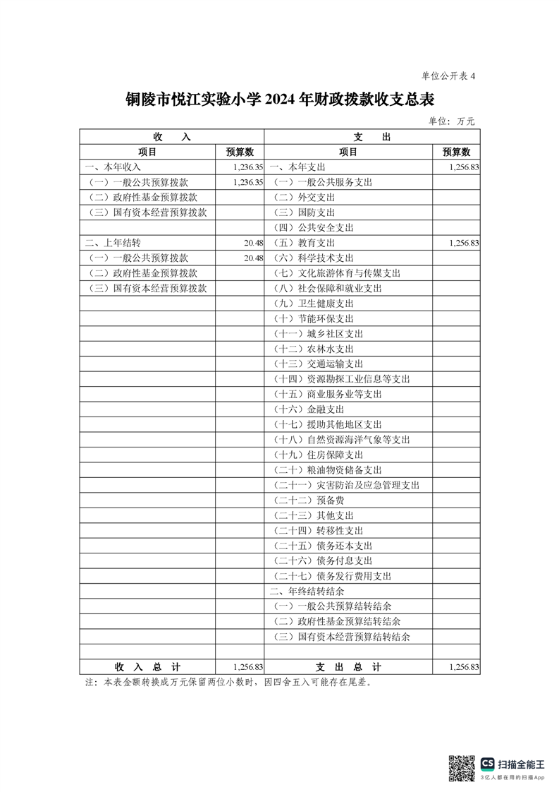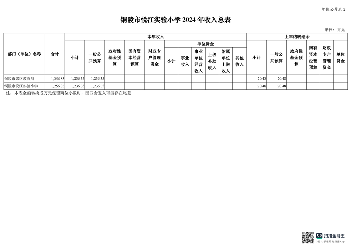 铜陵市悦江实验小学2024年单位预算