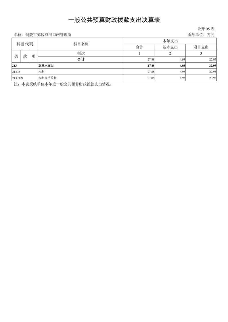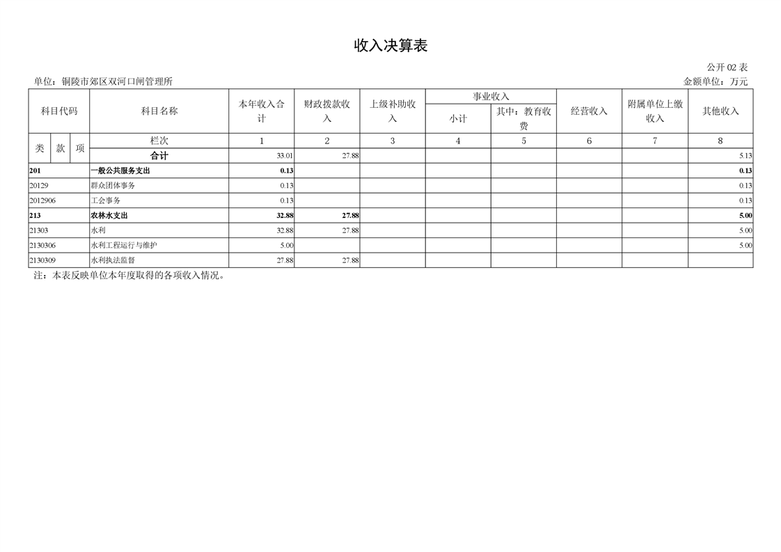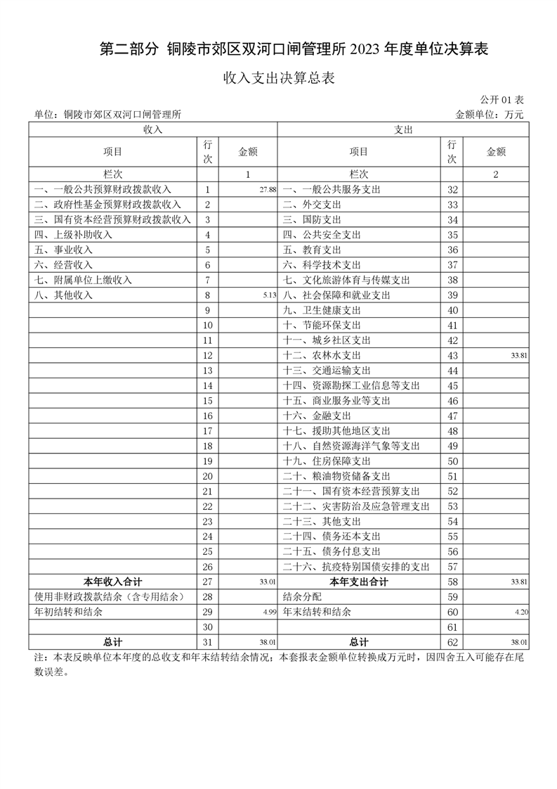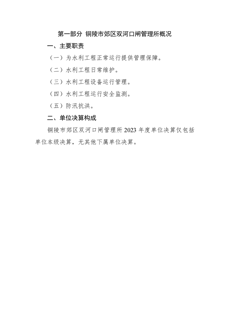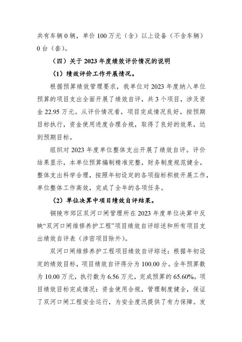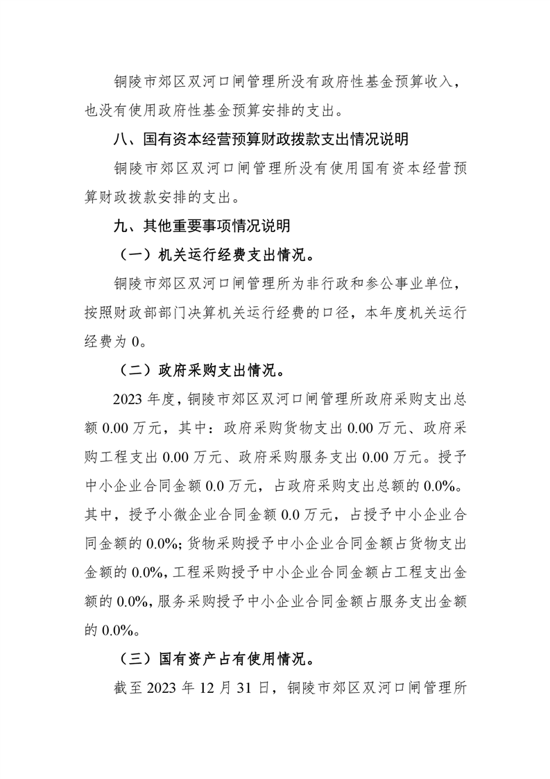 铜陵市郊区双河口闸管理所2023年单位决算公开