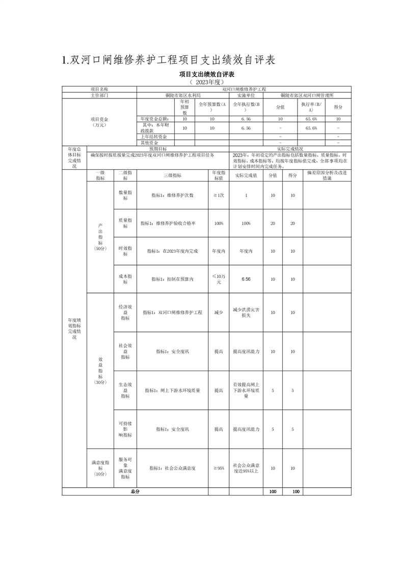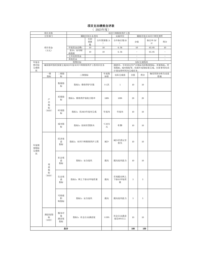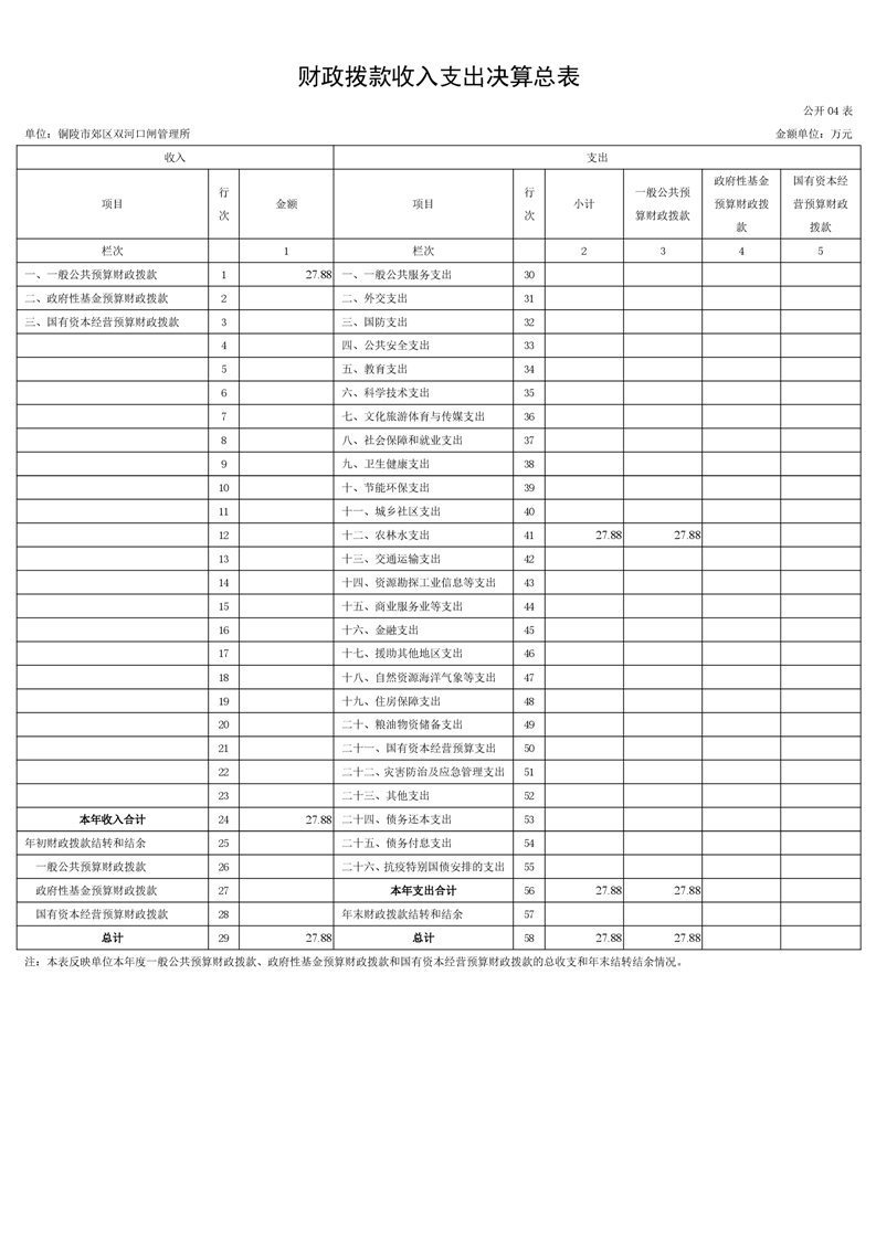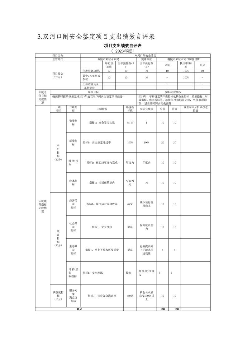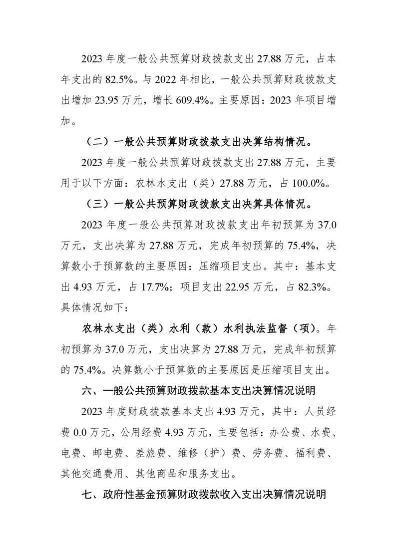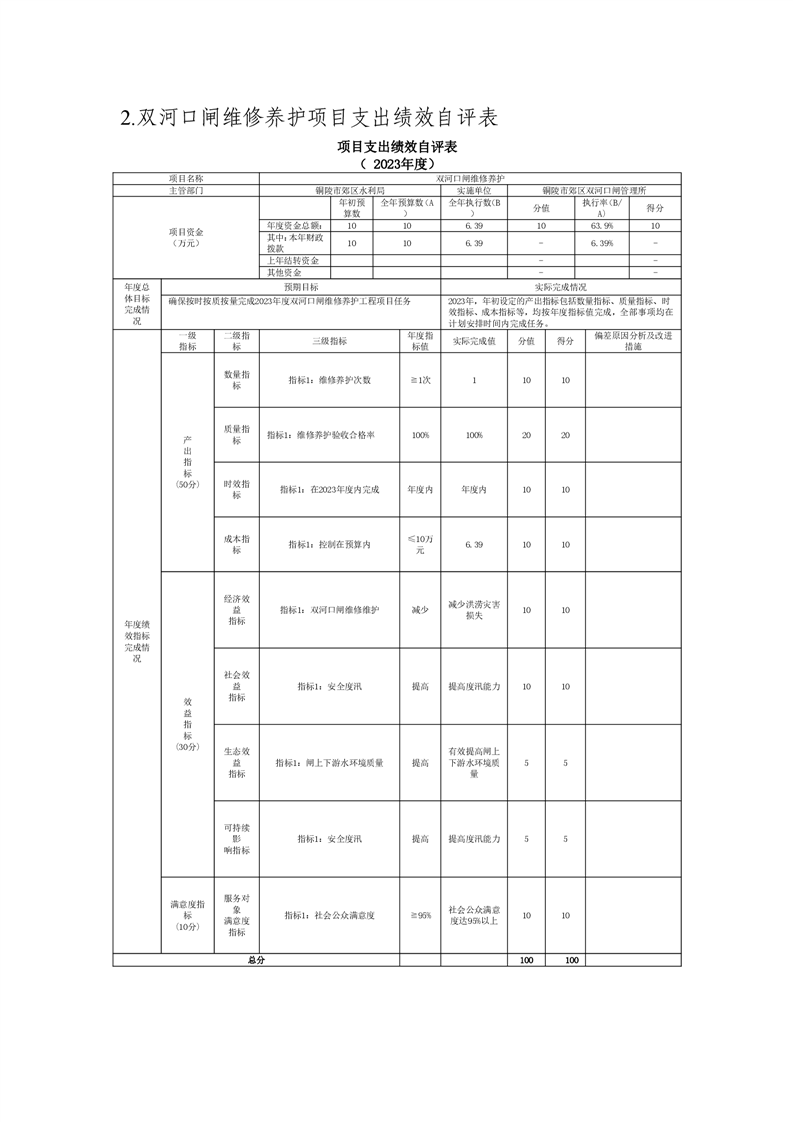 铜陵市郊区双河口闸管理所2023年单位决算公开