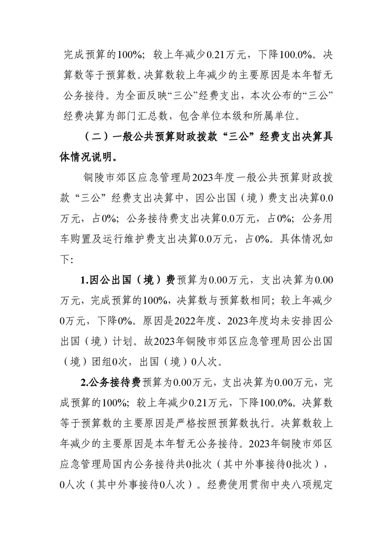 铜陵市郊区应急管理局2023年一般公共预算“三公”经费预算