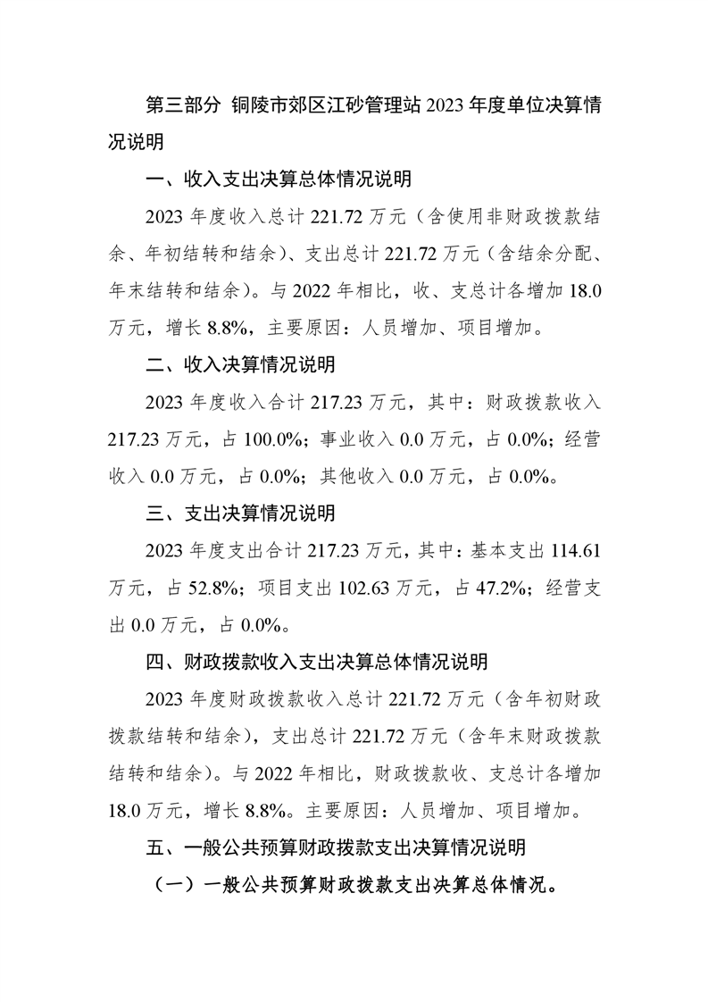 铜陵市郊区江砂管理站2023年度单位决算