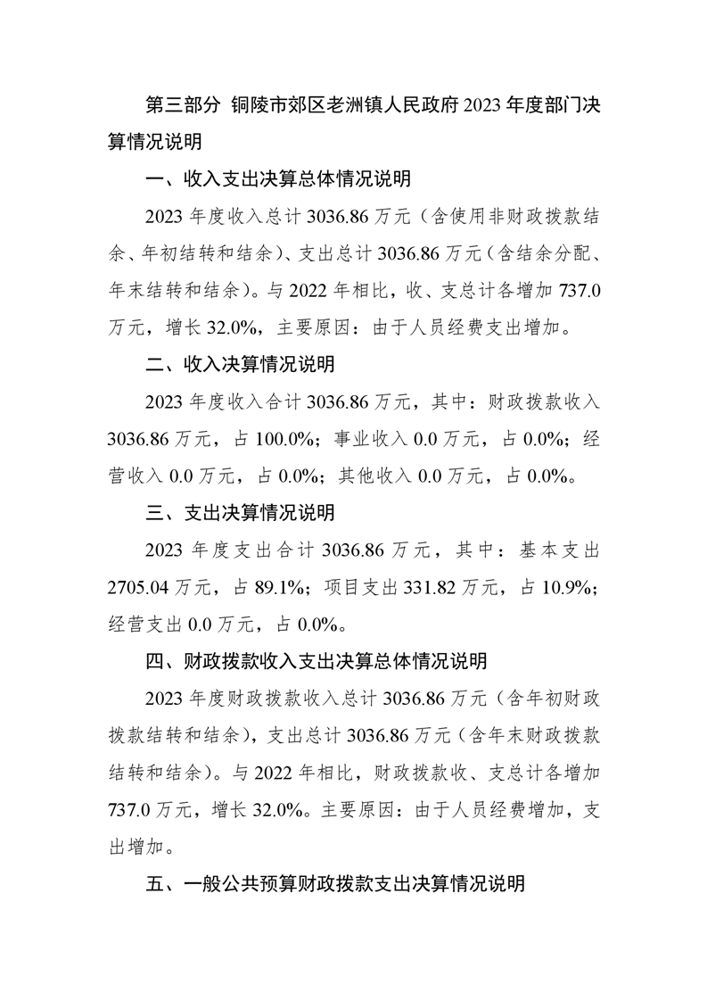 铜陵市郊区老洲镇人民政府2023年度部门决算