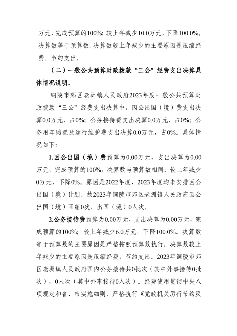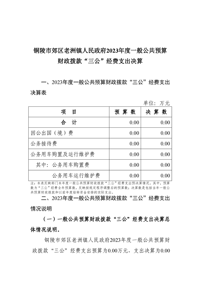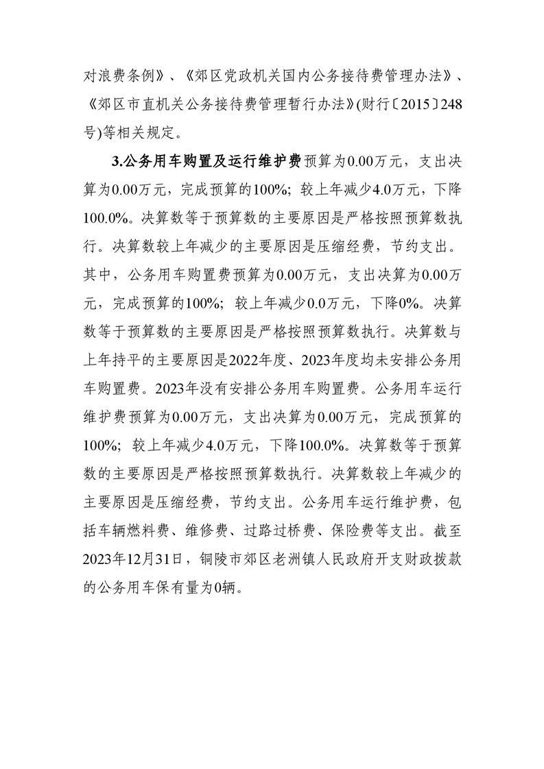 铜陵市郊区老洲镇人民政府2023年度一般公共预算财政拨款“三公”经费支出决算