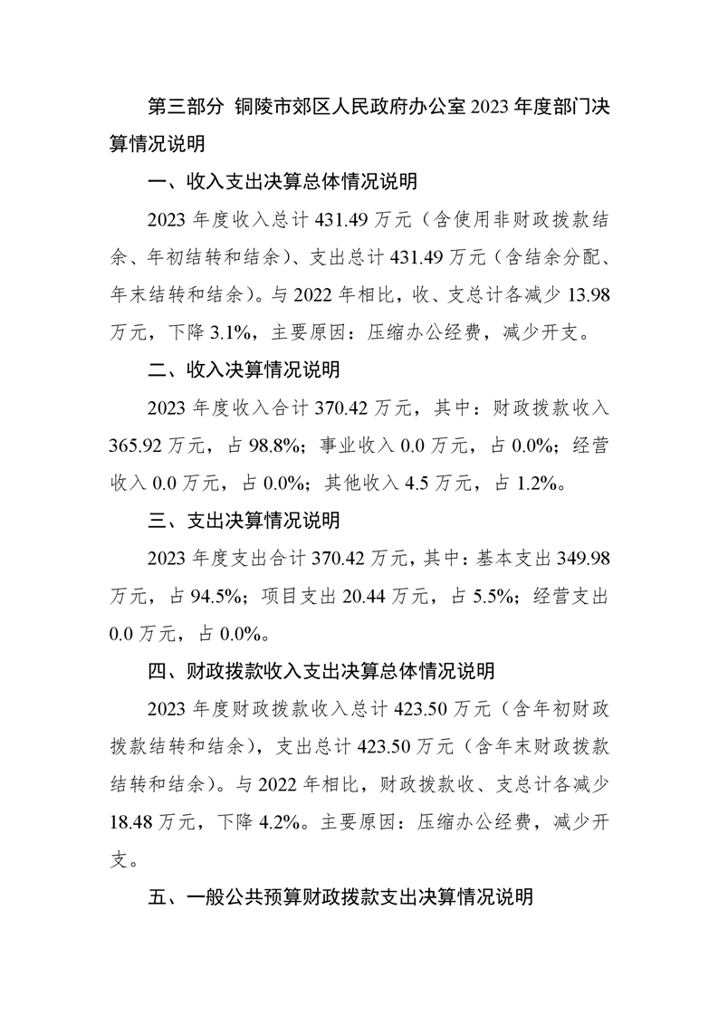 郊区政府办公室2023年度部门决算