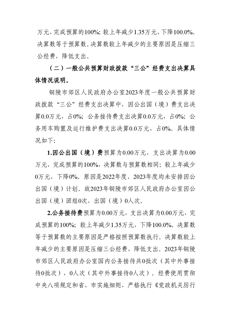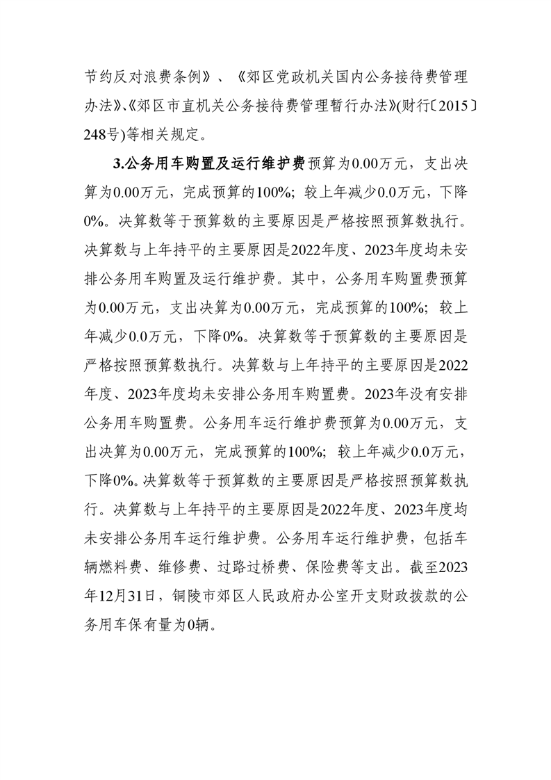 郊区政府办公室2023年度一般公共预算财政拨款“三公”经费支出决算