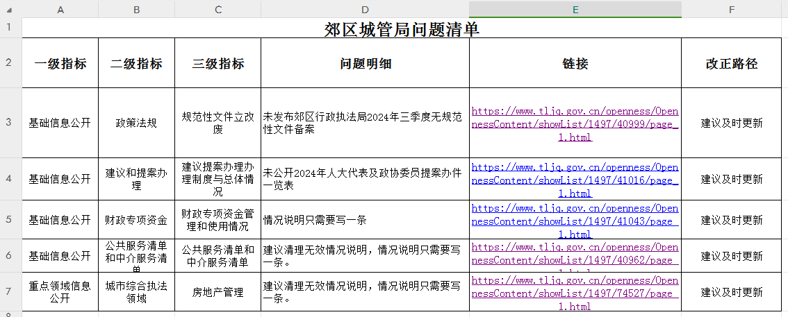 9月13日我局参加各部门之间进行互查的工作会议,根据互查表就对方政府公开平台栏目更新情况,栏目发的信息问题,错敏词及隐私泄露问题展开详细的检查。我局与区交通局展开互查,互查中交通局共发现我局存在栏目更新不及时,发布情况说明较多,建议提案办理办理制度与总体情况未发布等5个问题,收到问题后我局高度重视,立刻对照问题清单展开整改,现均已整改完毕。同时我局举一反三就查评会反应问题,对照我局网站公开内容自查自纠,进一步梳理完善局政务公开内容。