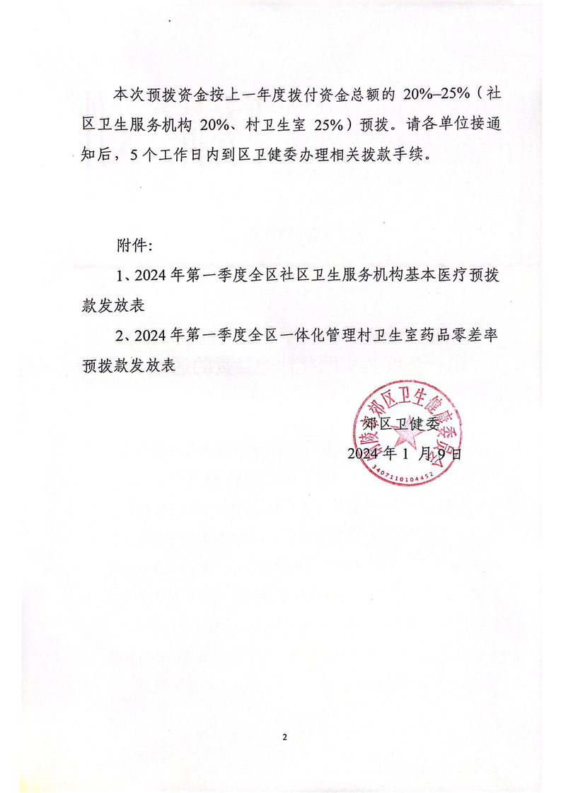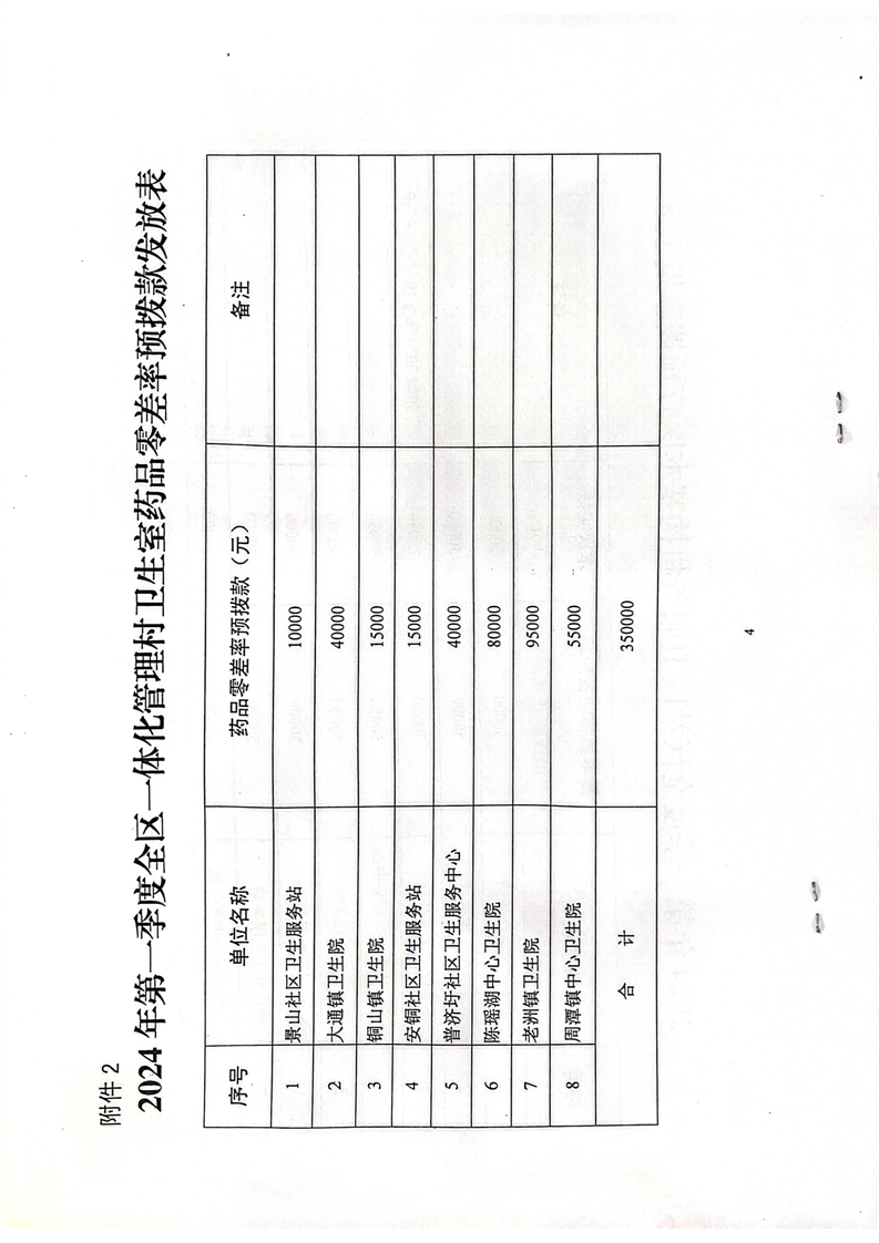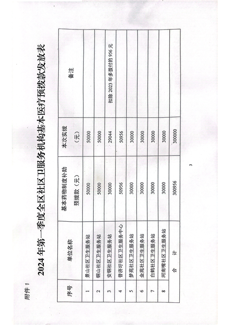 郊区卫健委拨付郊区基层医疗卫生机构2024年第一季度基本医疗补助经费情况