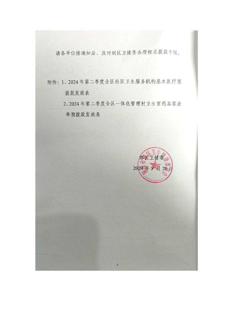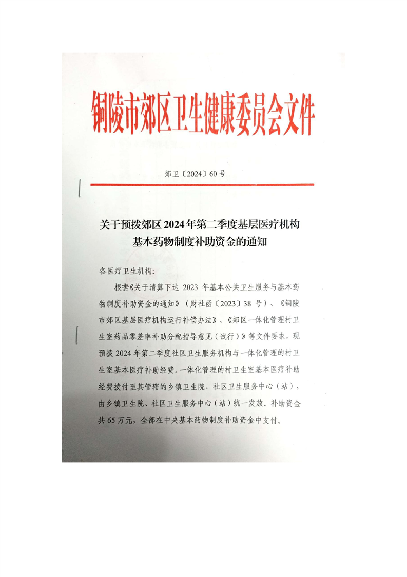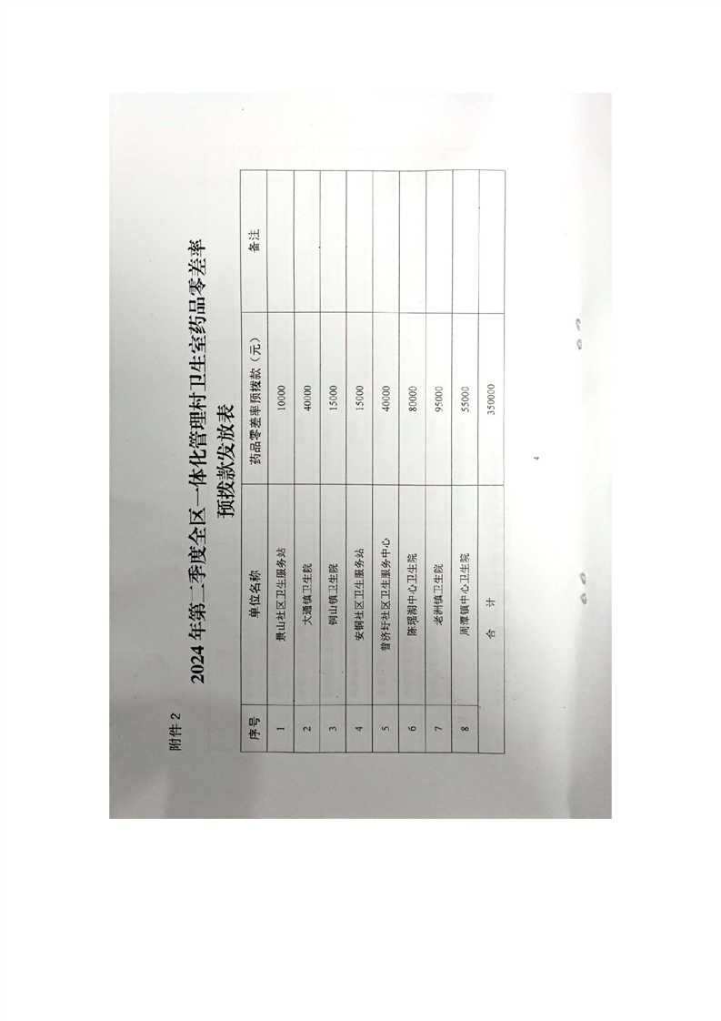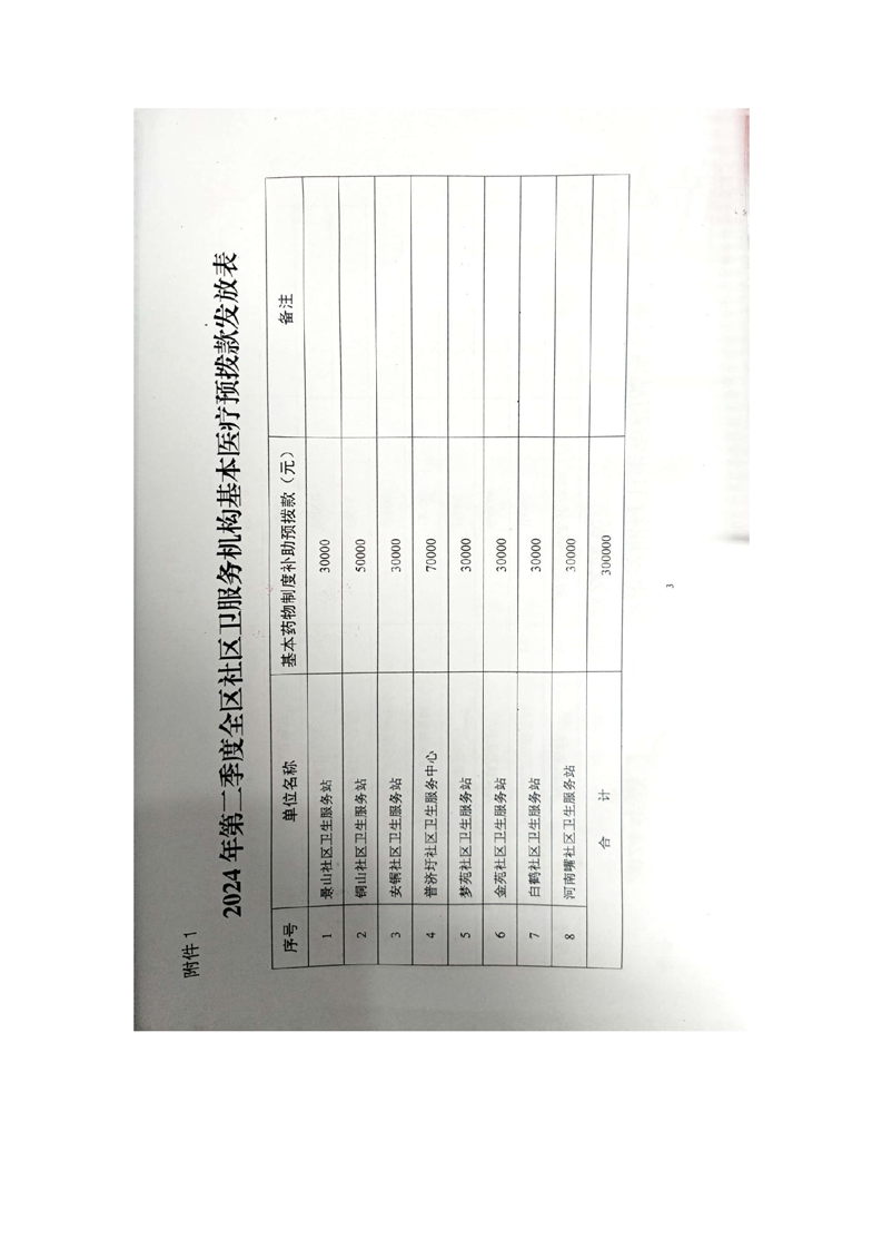 郊区卫健委拨付郊区基层医疗卫生机构2024年第二季度基本医疗补助经费情况