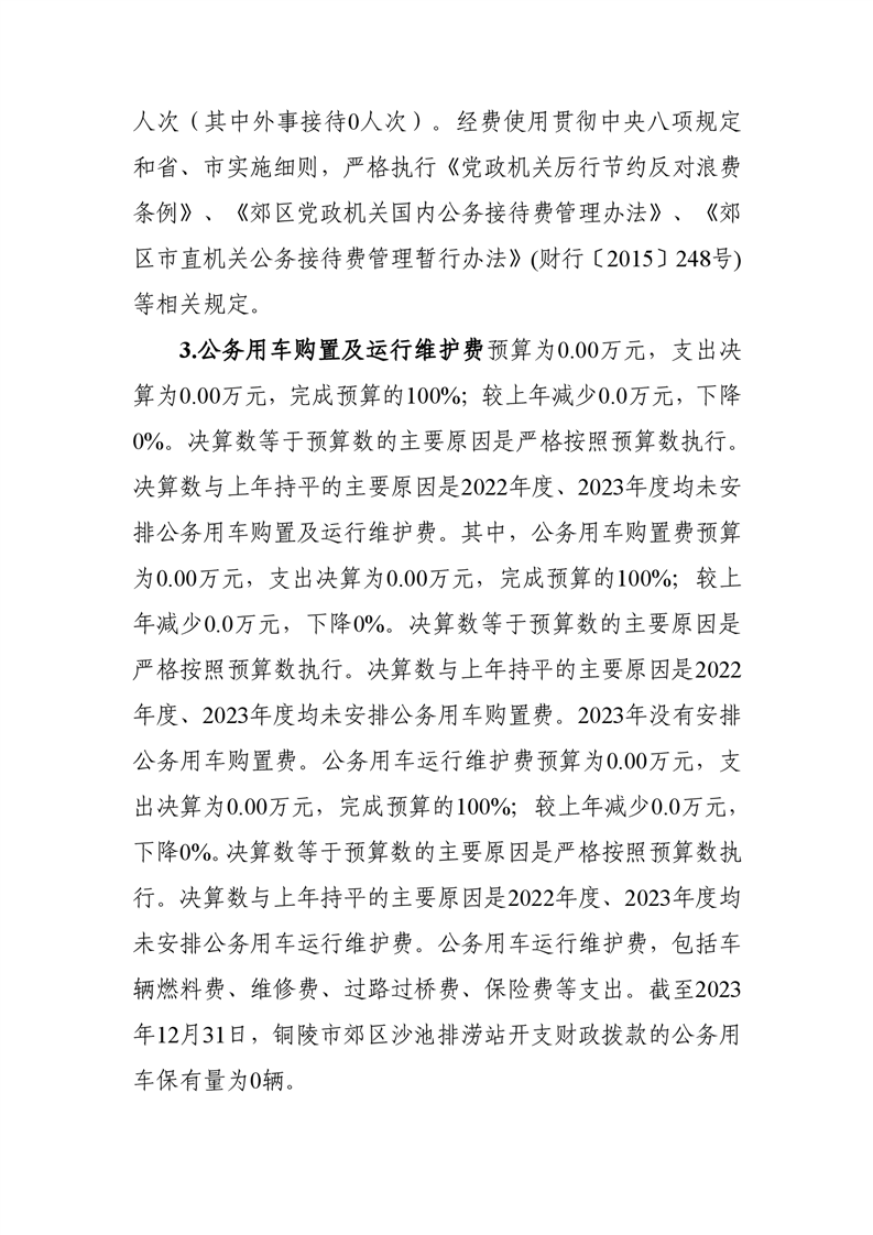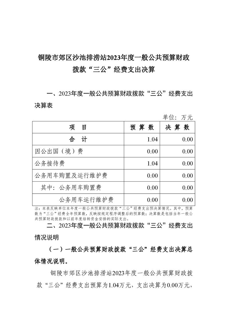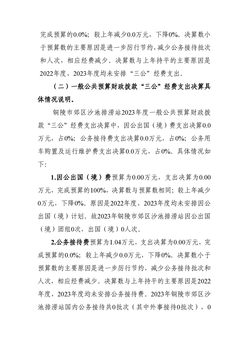铜陵市郊区沙池排涝站2023年三公经费决算