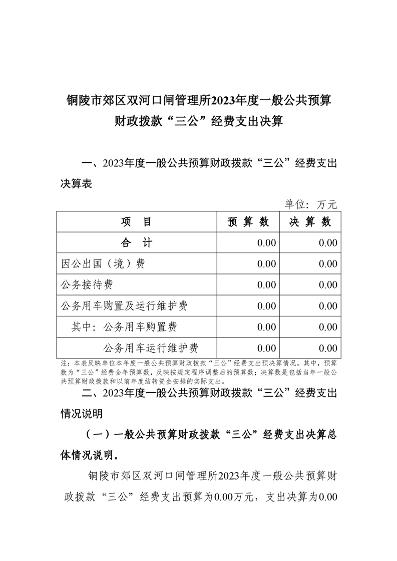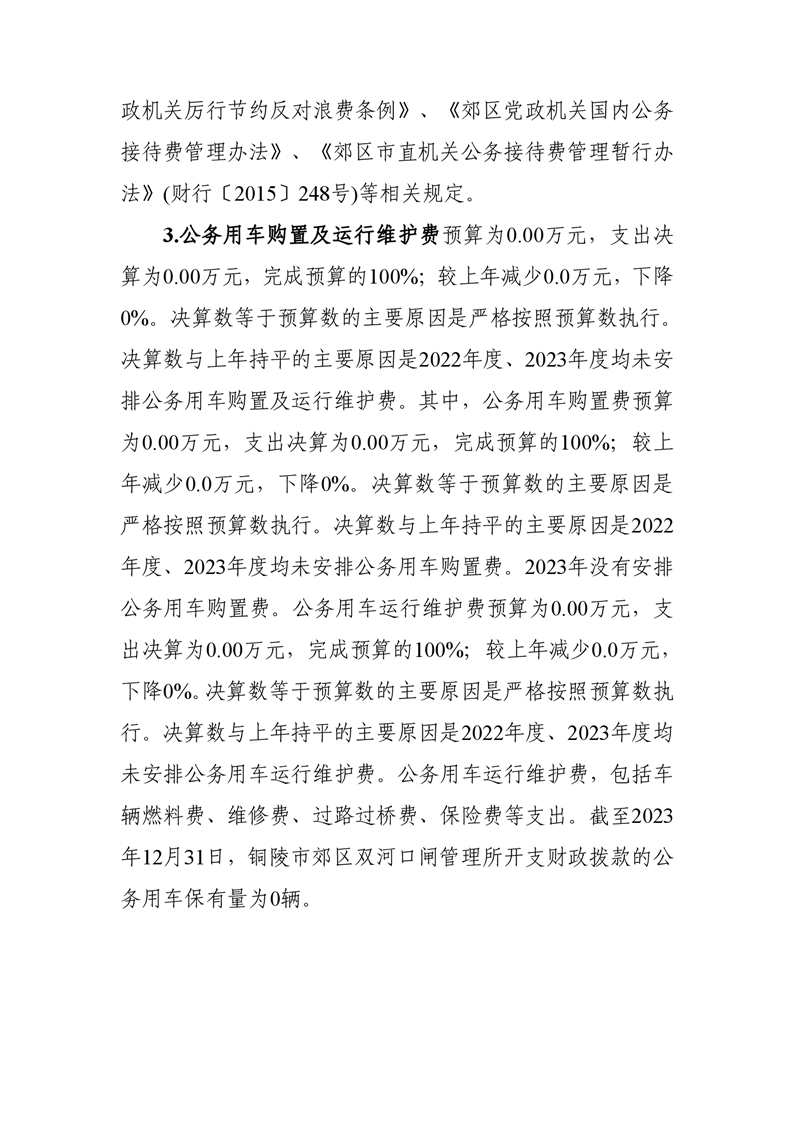 铜陵市郊区双河口闸管理所2023年三公经费决算
