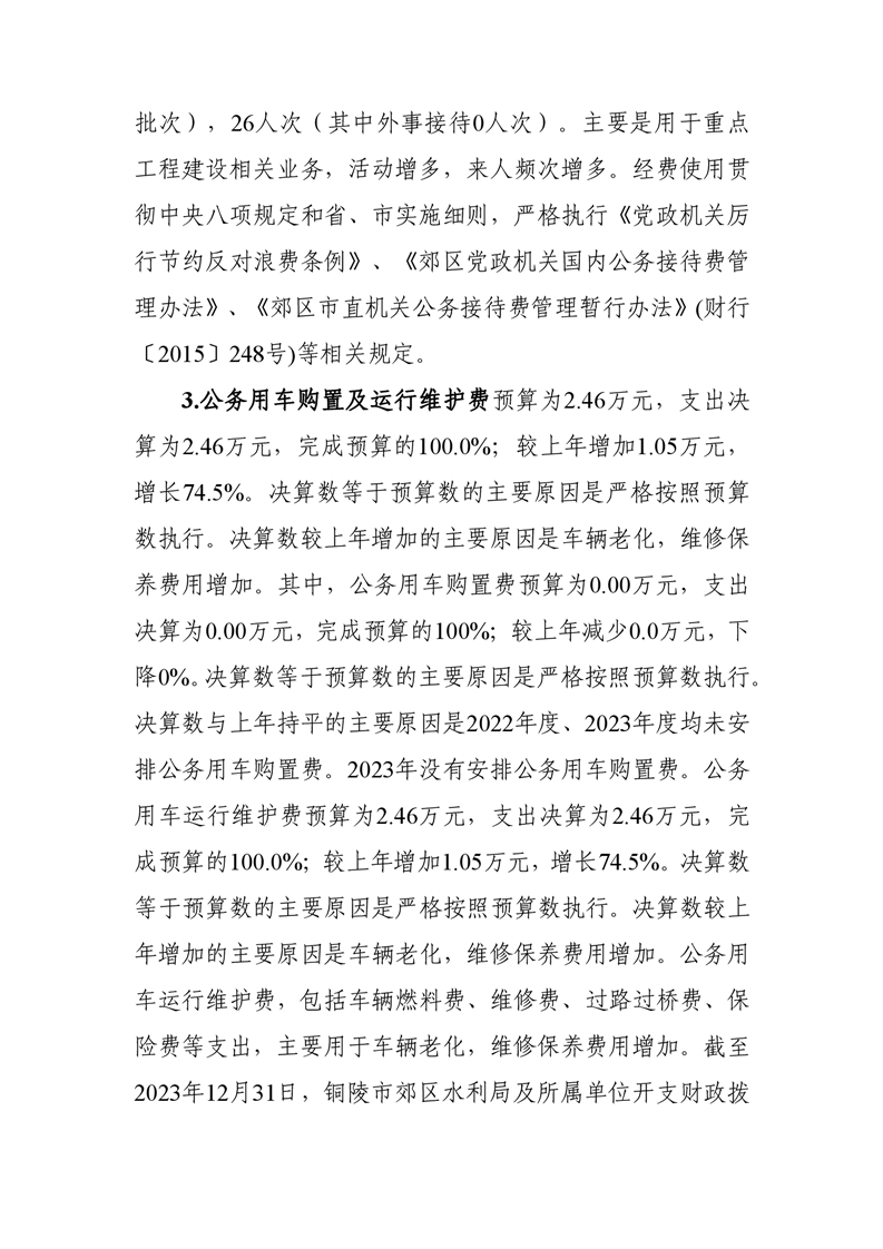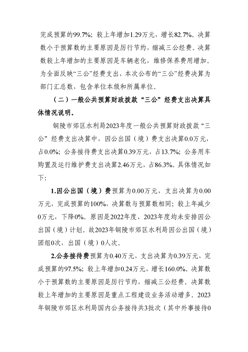 铜陵市郊区水利局2023年部门三公经费决算