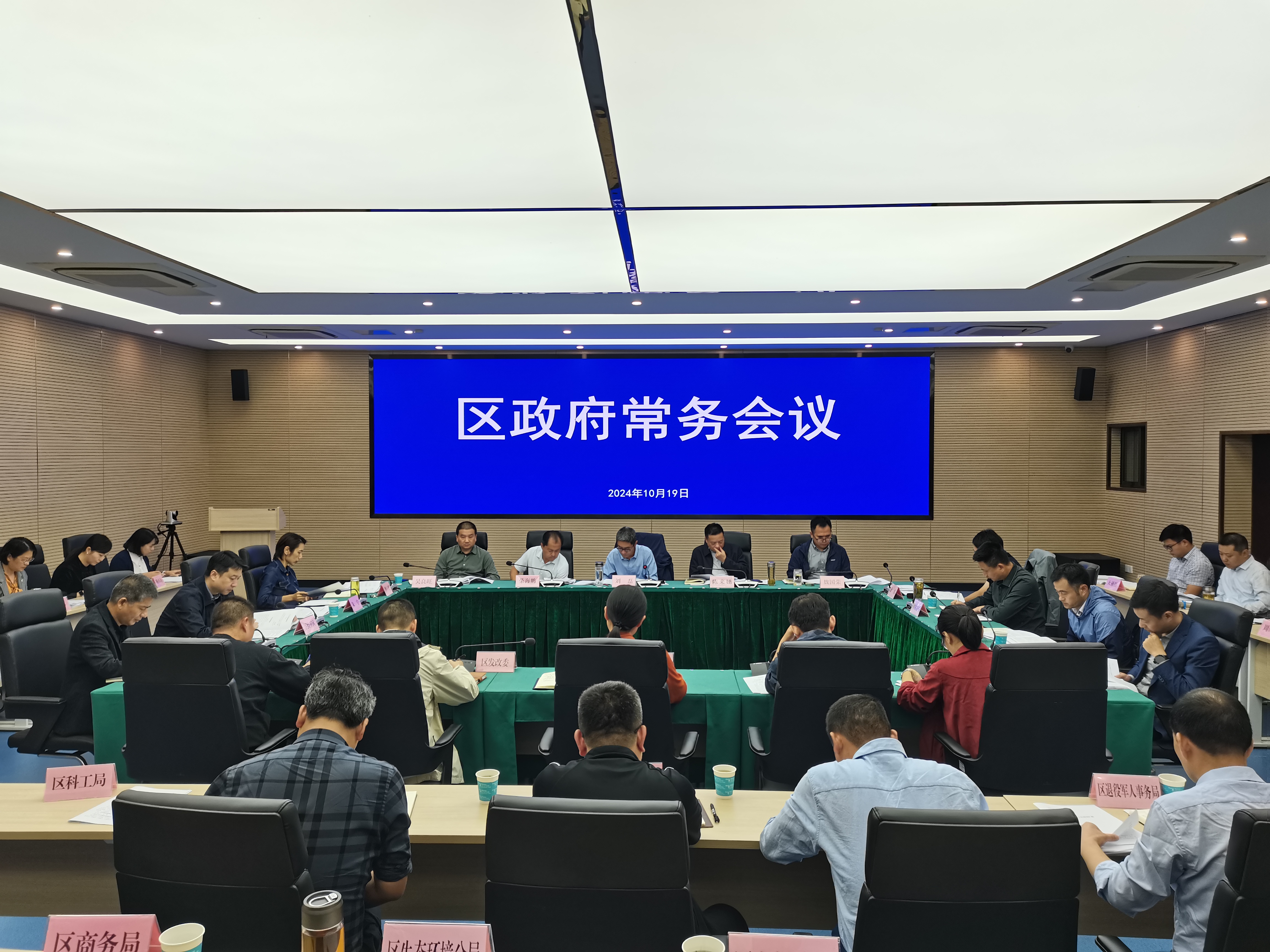 2024年10月19日上午,在智慧郊区指挥中心,区长刘磊主持召开第33次区政府常务会议。区委常委、常务副区长陈来娣,副区长荣海鹏、魏国荣、吴良旺、余炜、李瑶出席会议,区直有关部门负责人列席会议。