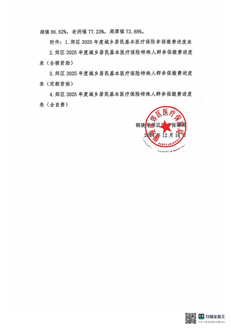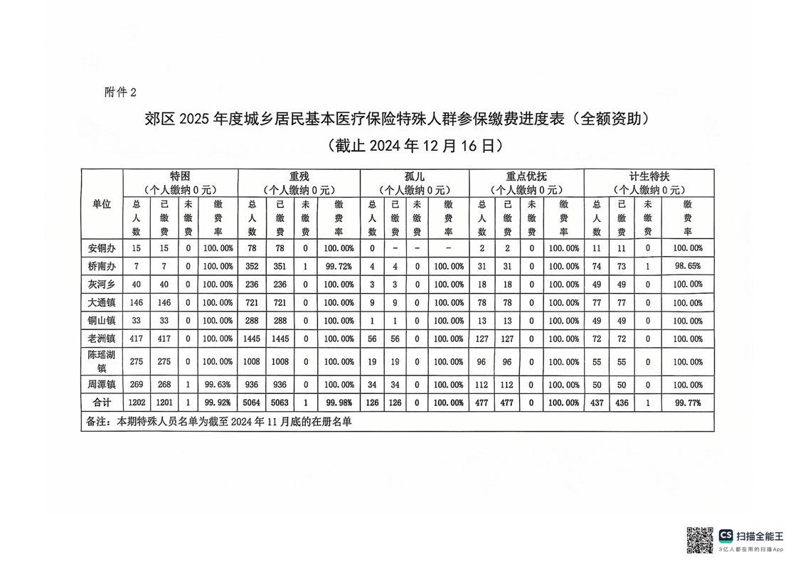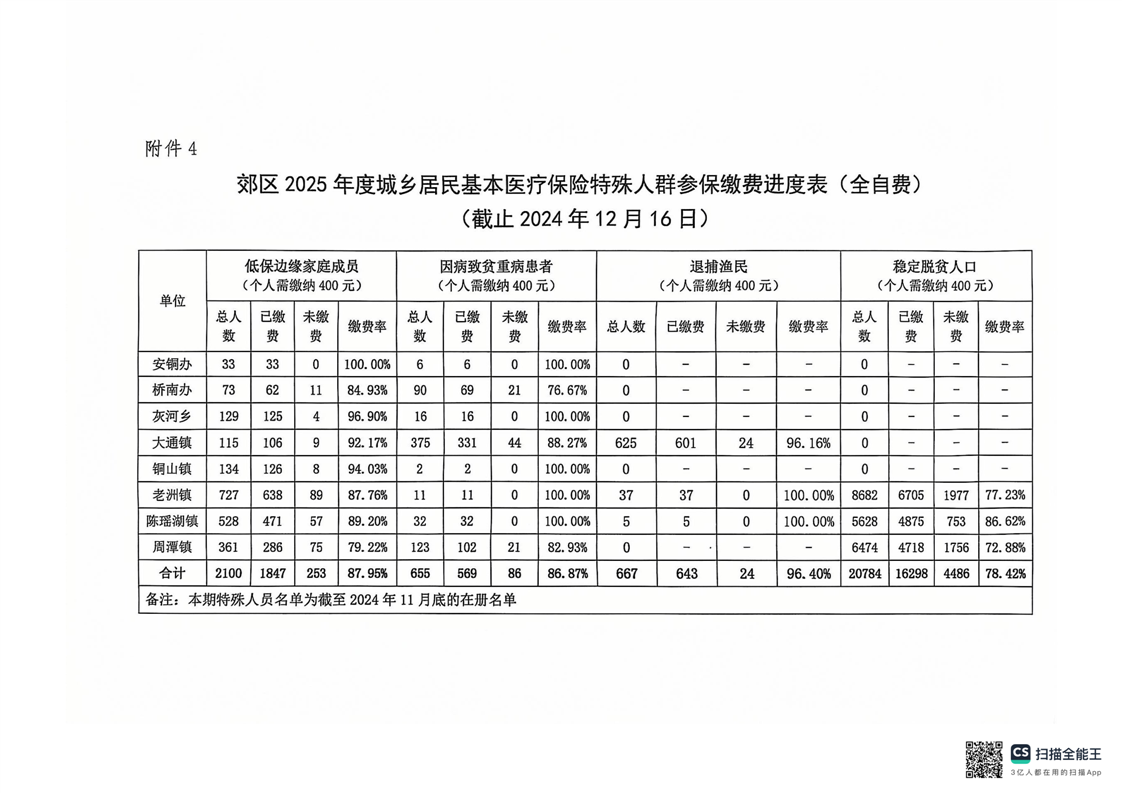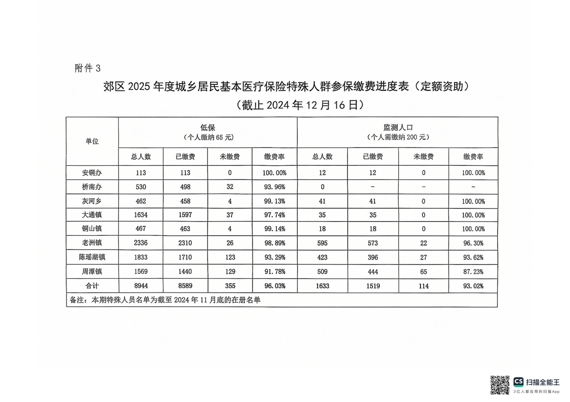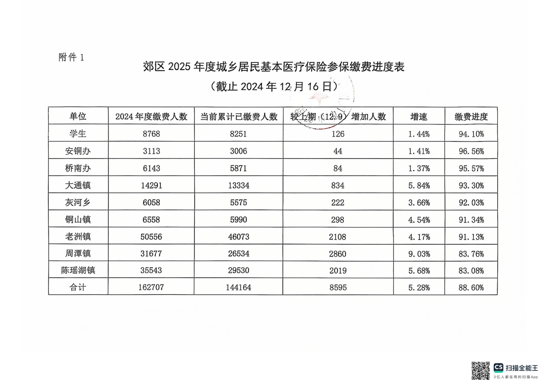 郊区2025年度城乡居民基本医疗保险参保缴费进度通报