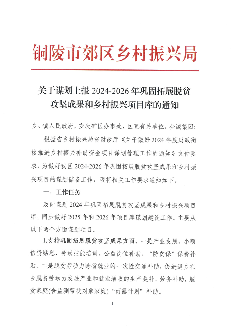 关于谋划上报2024-2026年巩固拓展脱贫攻坚成果和乡村振兴项目库的通知
