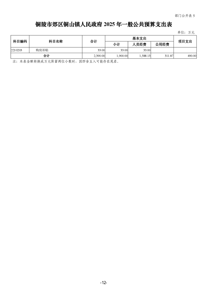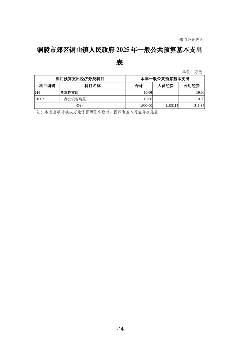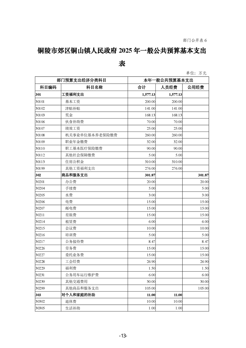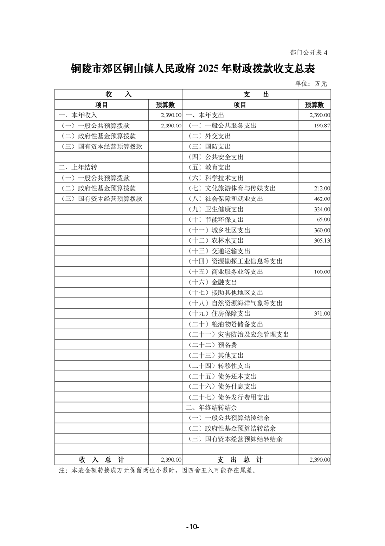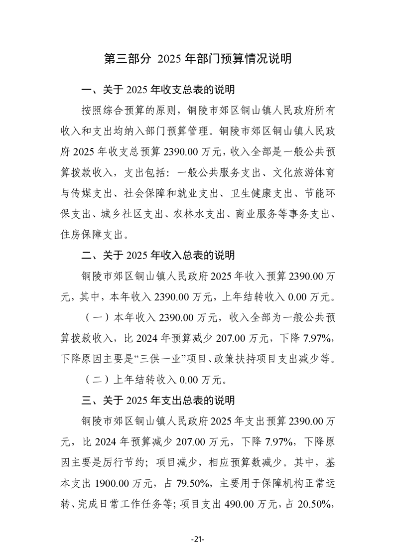 铜陵市郊区铜山镇人民政府2025年部门预算