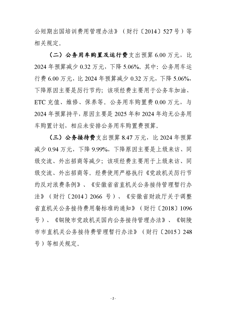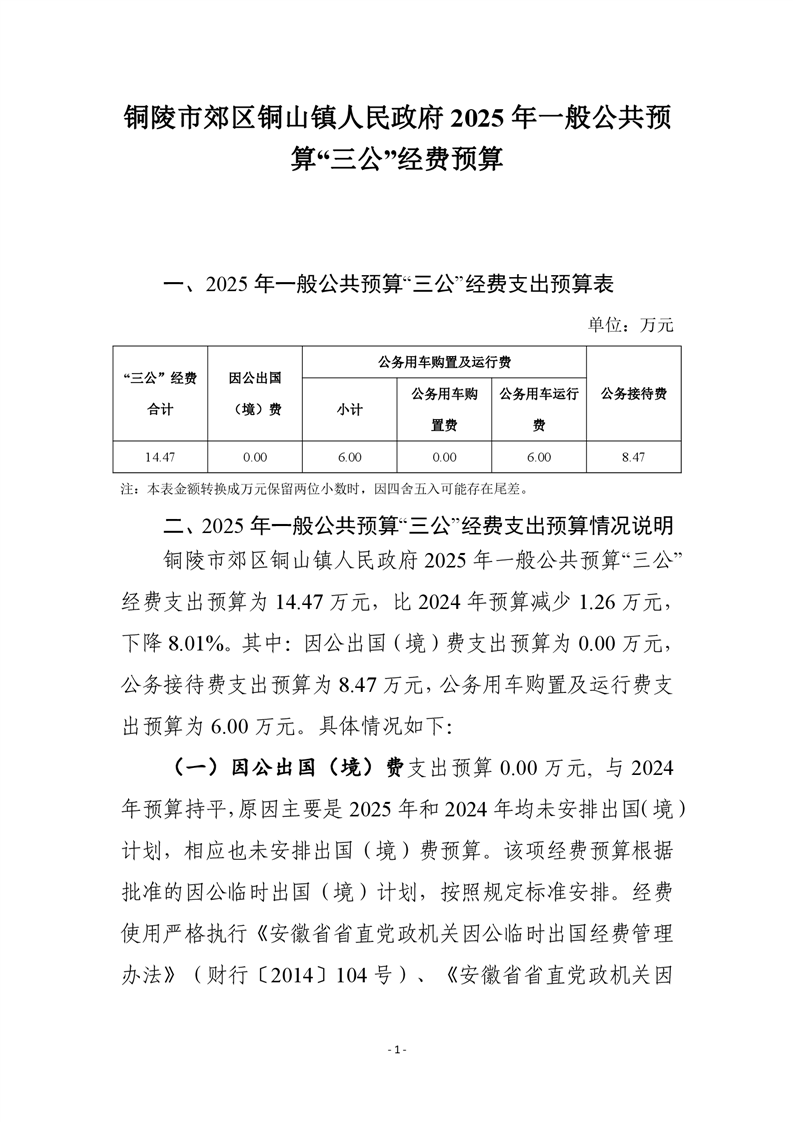 铜陵市郊区铜山镇人民政府 2025 年一般公共预算“三公”经费预算