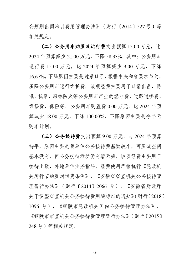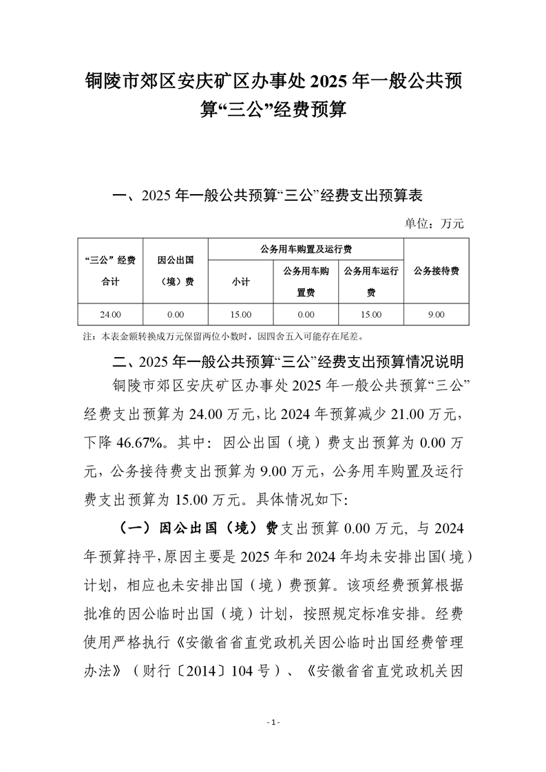 铜陵市郊区安庆矿区办事处2025年度三公经费预算