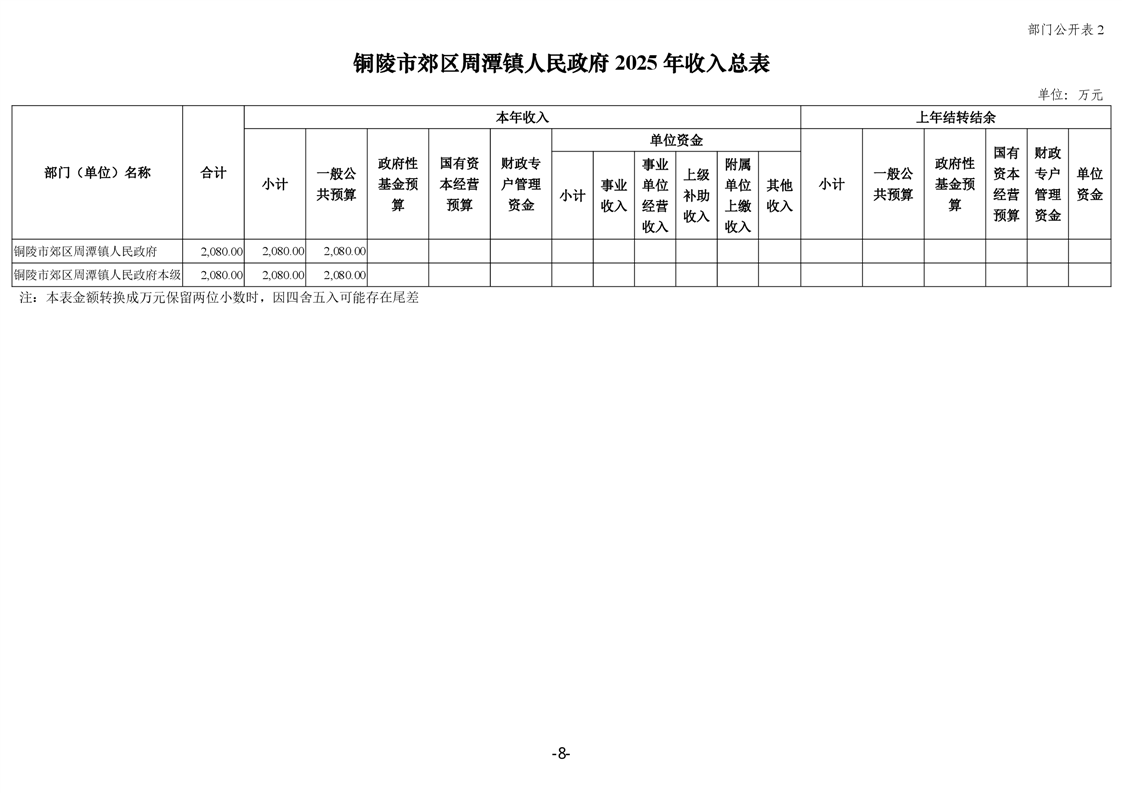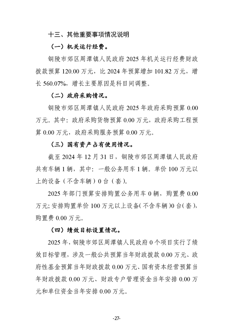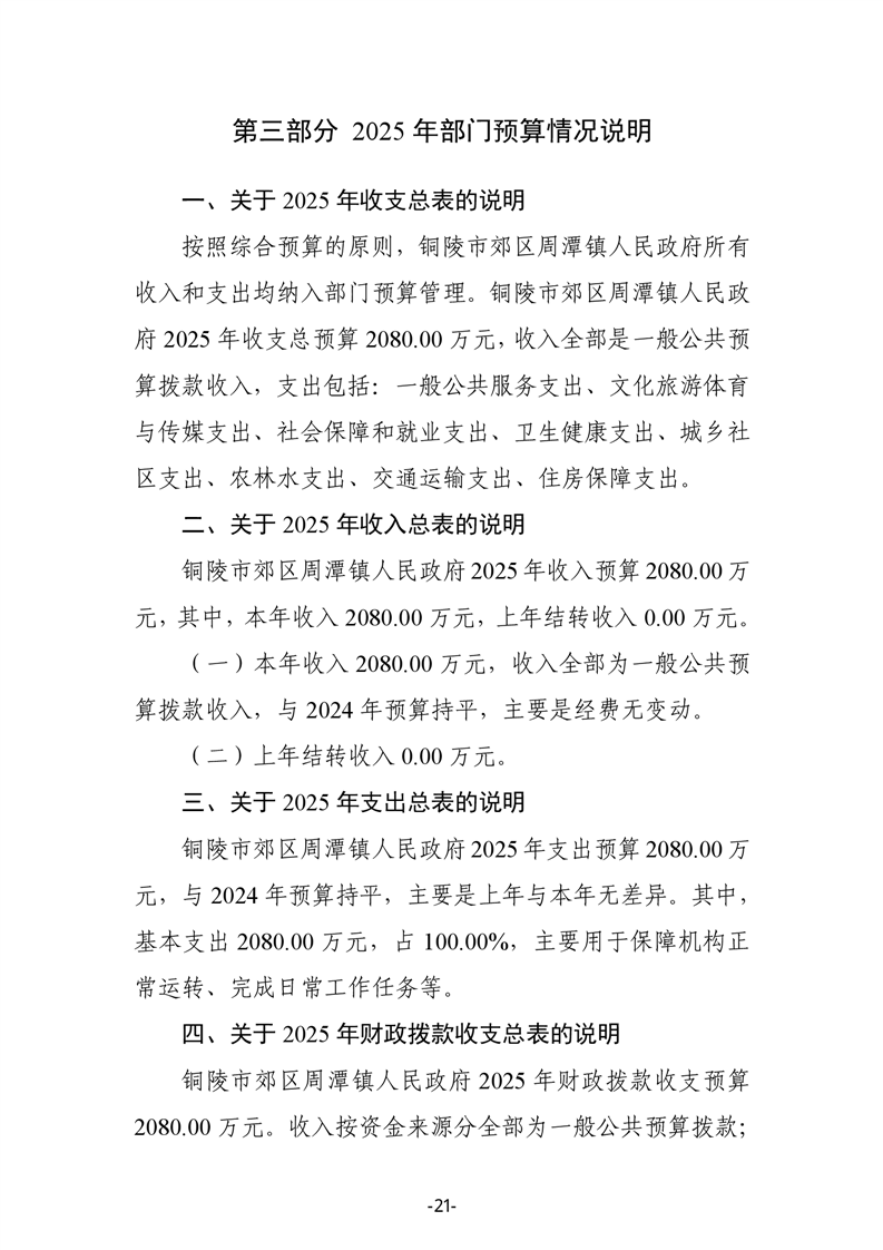 铜陵市郊区周潭镇人民政府2025年部门预算公开