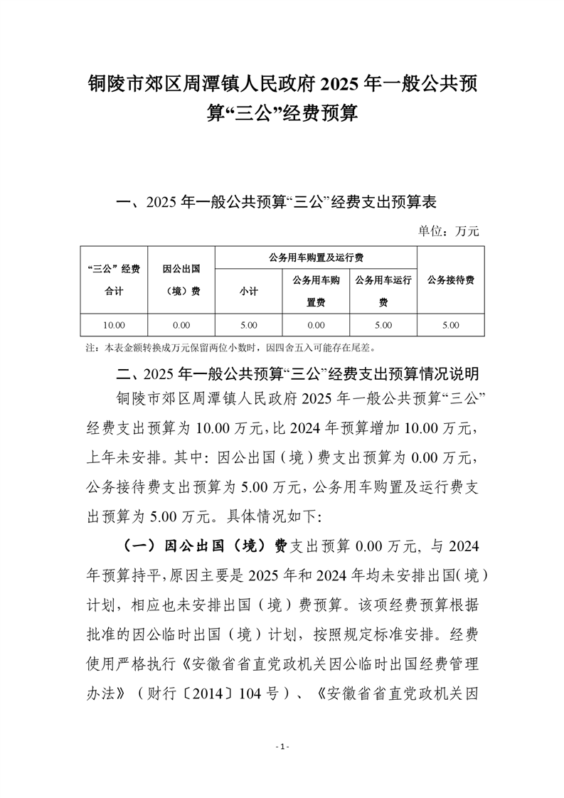 铜陵市郊区周潭镇人民政府2025年度三公经费预算信息公开