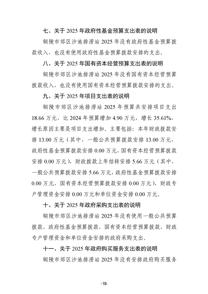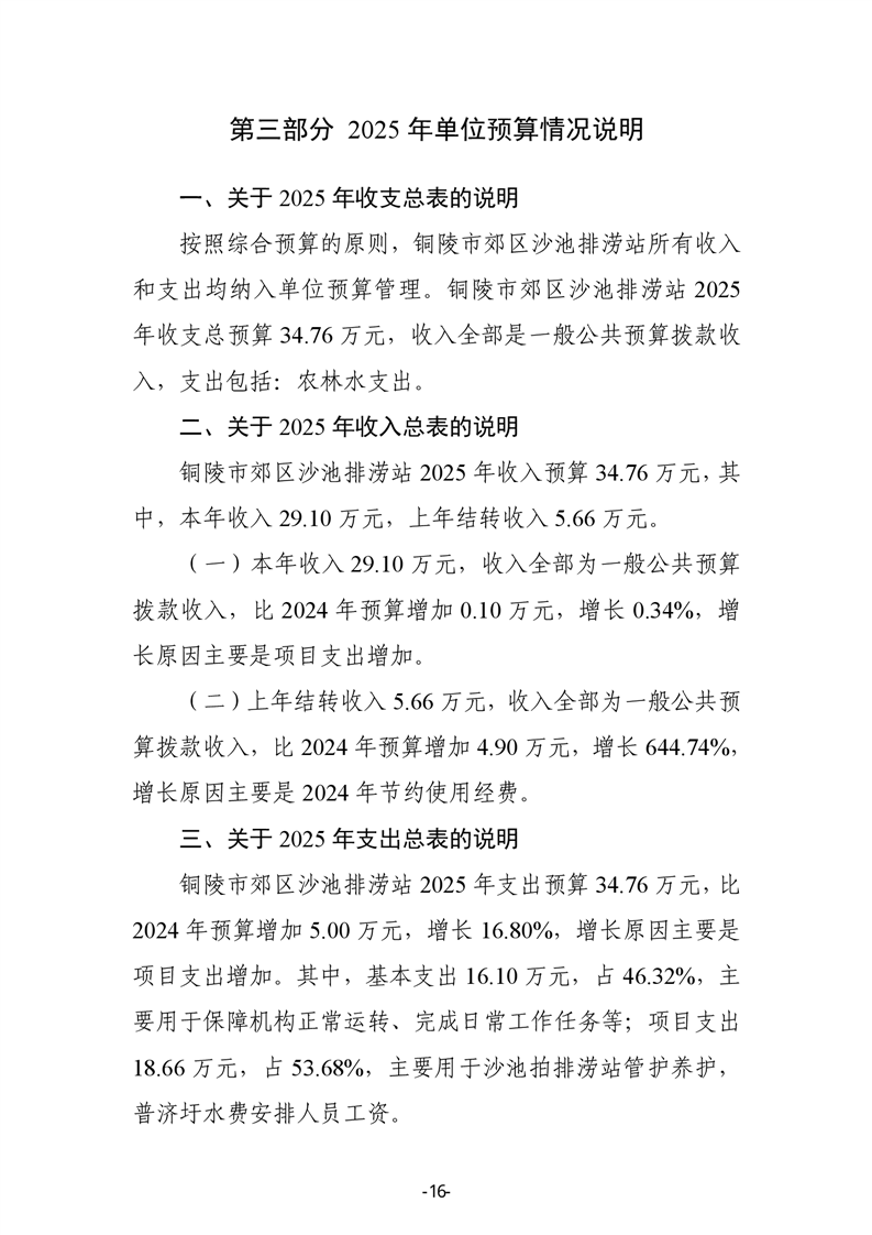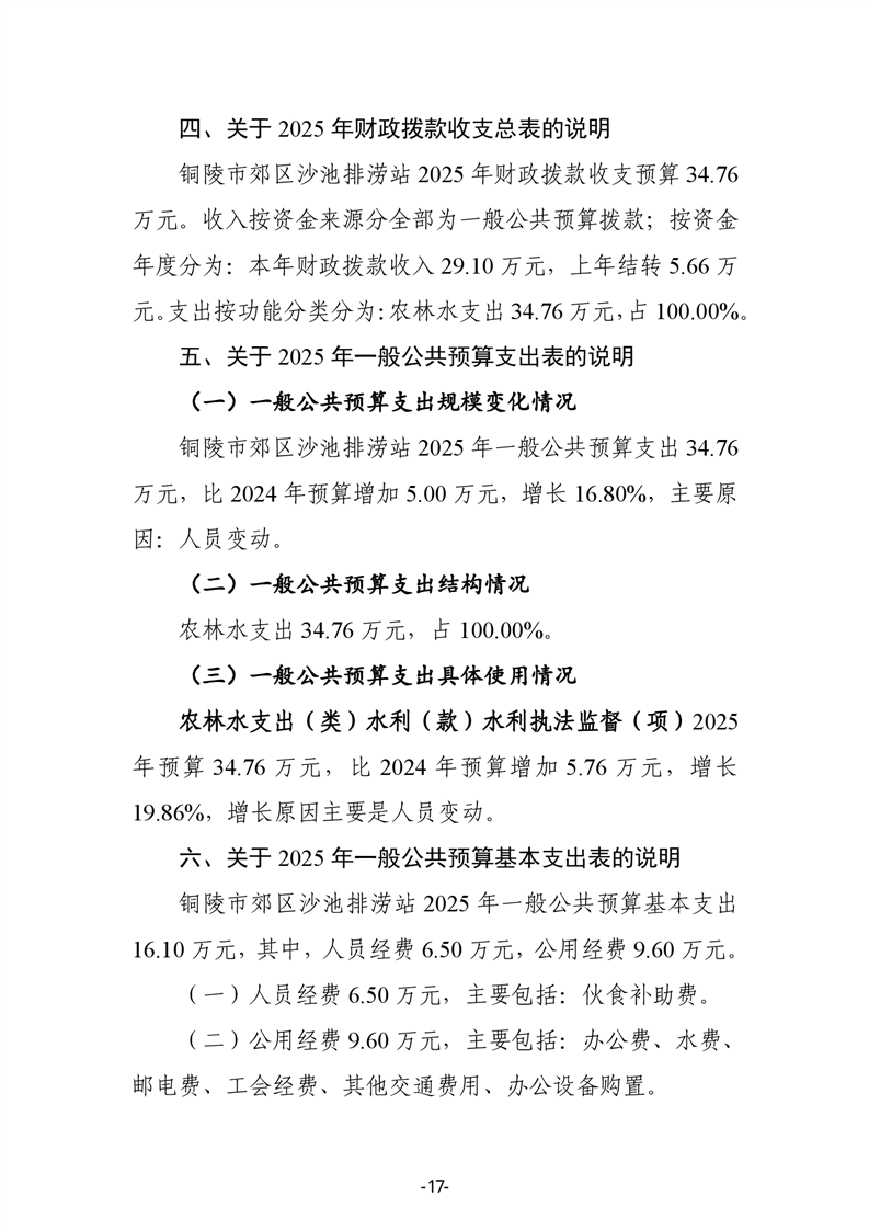 铜陵市郊区沙池排涝站2025年单位预算公开