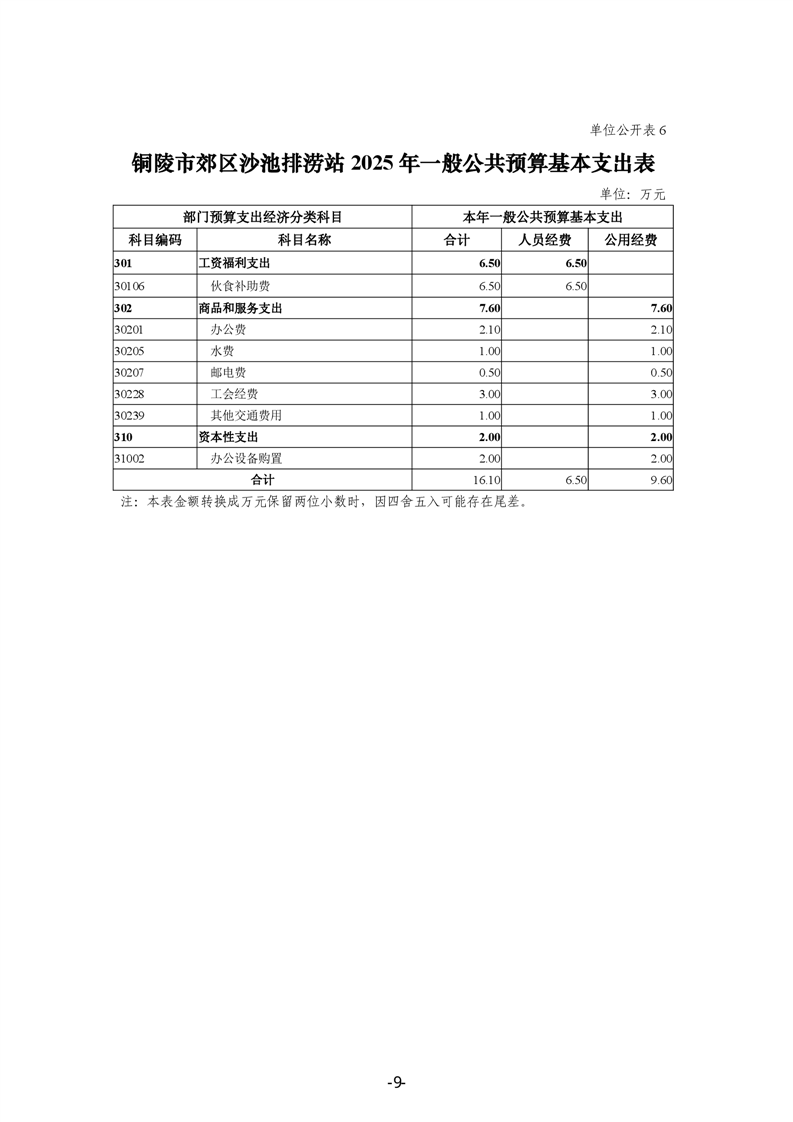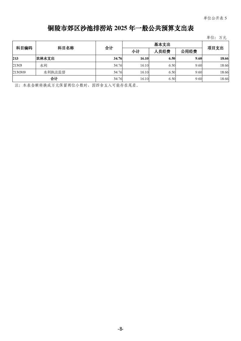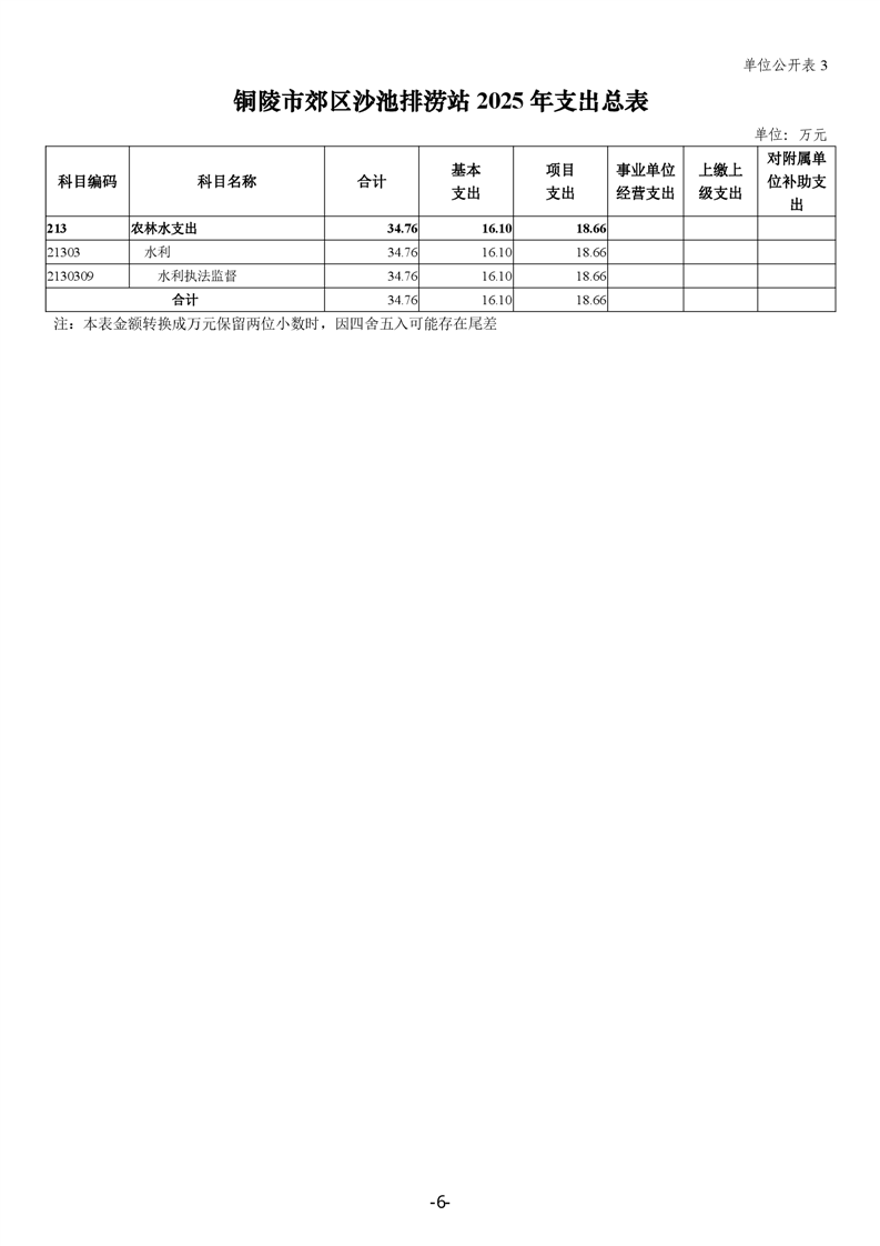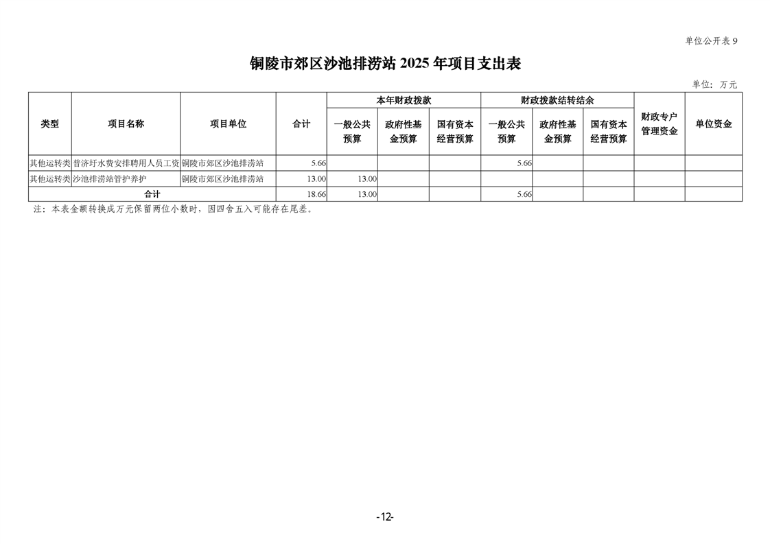 铜陵市郊区沙池排涝站2025年单位预算公开