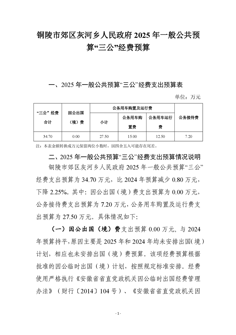 铜陵市郊区灰河乡人民政府2025年度三公经费预算信息公开