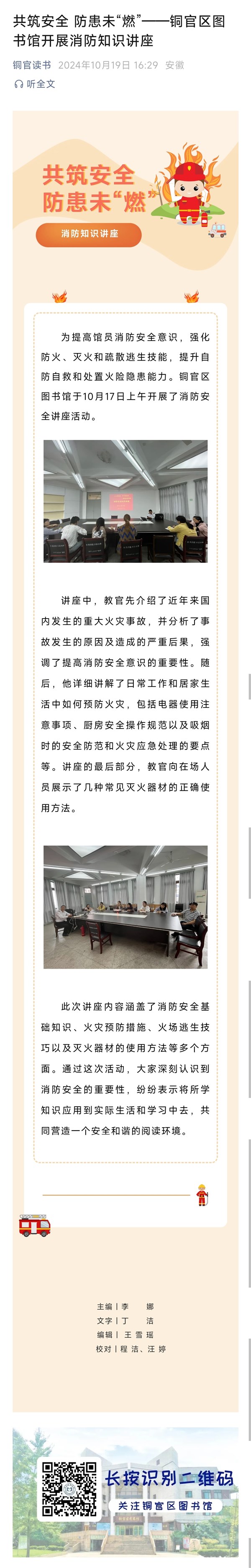 共筑安全 防患未“燃”——铜官区图书馆开展消防知识讲座
