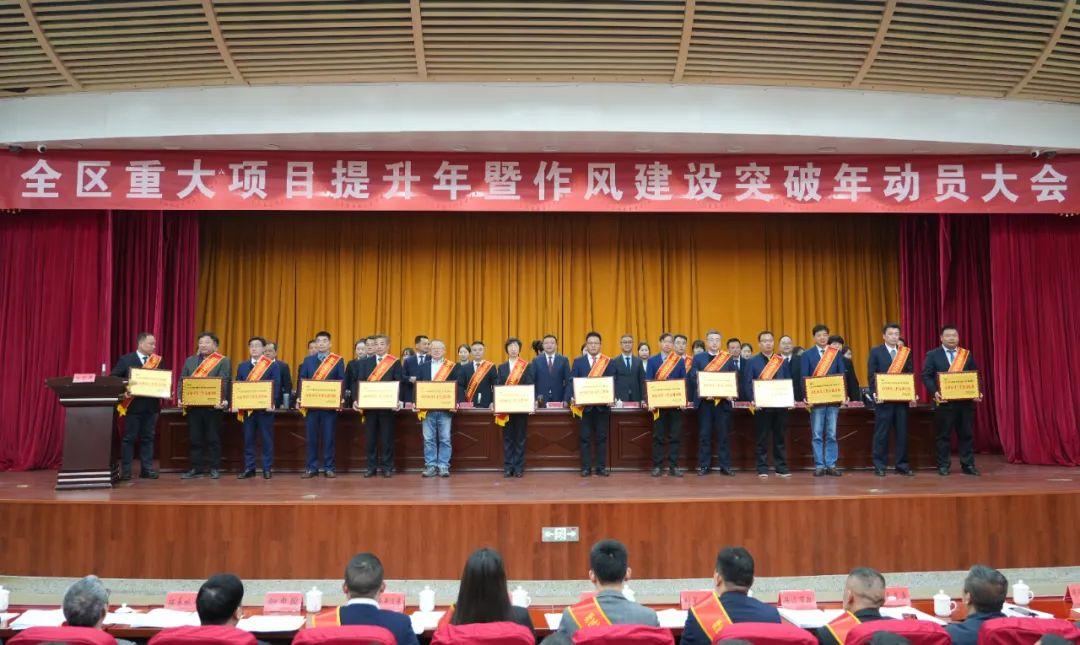 2月7日上午,全区重大项目提升年暨作风建设突破年动员大会在区行政会议中心召开。区委书记王所宝出席并讲话。他强调,要坚持以习近平新时代中国特色社会主义思想为指导,全面贯彻落实党的二十大和二十届二中、三中全会精神,全面落实习近平总书记考察安徽重要讲话精神,锚定“继续在全省城区方阵中走在前列”目标,弘扬实干精神,激扬奋进力量,以一流营商环境助推重大项目建设提升,以过硬能力作风保障高质量发展,奋力谱写现代化幸福美丽新郊区建设新篇章。区委副书记、区长刘磊主持会议。区领导倪学文、陈来娣、李源、蒋宁、翟刚、江翠梅、荣海鹏、周赚等出席会议。安徽铜陵海螺水泥有限公司总经理颜家成、铜陵市富鑫钢铁有限公司总经理刘明秀等荣获2024年度重大项目建设暨双招双引工作先进集体代表企业负责同志应邀在主席台就座。