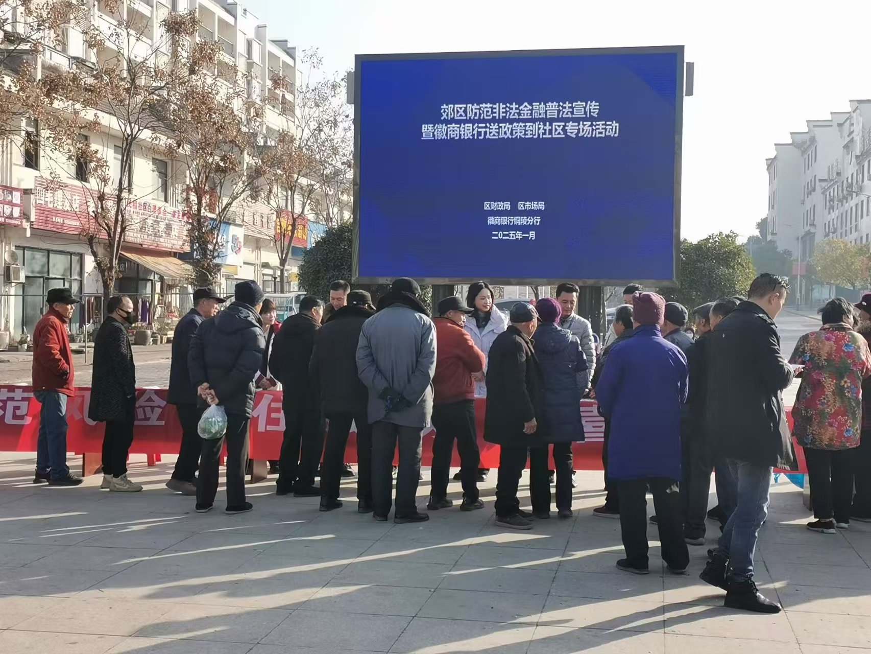 2025年1月21日为常态化机制化开展防范非法金融活动,保护中小投资者权益,区财政局联合区市场局、徽商银行铜陵分行在郊区大通镇民福社区开展普法宣传和送政策到社区活动.本次活动旨在激发群众提高自己的防范风险意识,形成全社会防范非法金融活动的良好氛围。