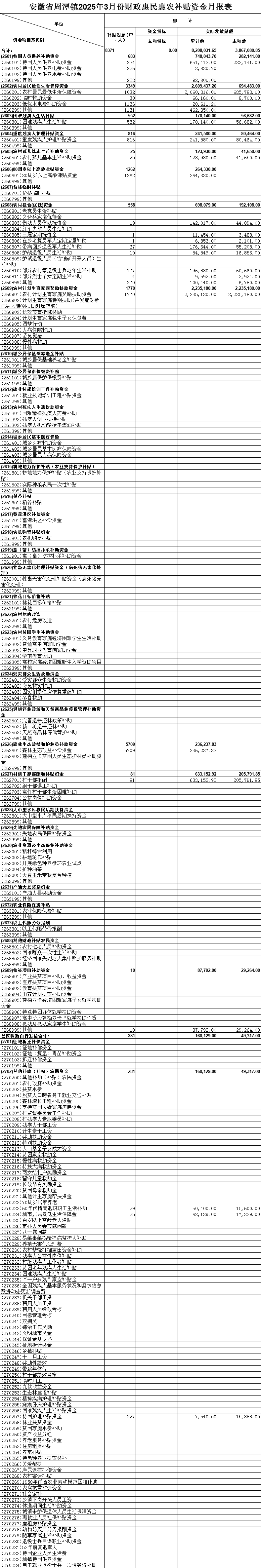 安徽省周潭镇2025年3月份财政惠民惠农补贴资金月报表