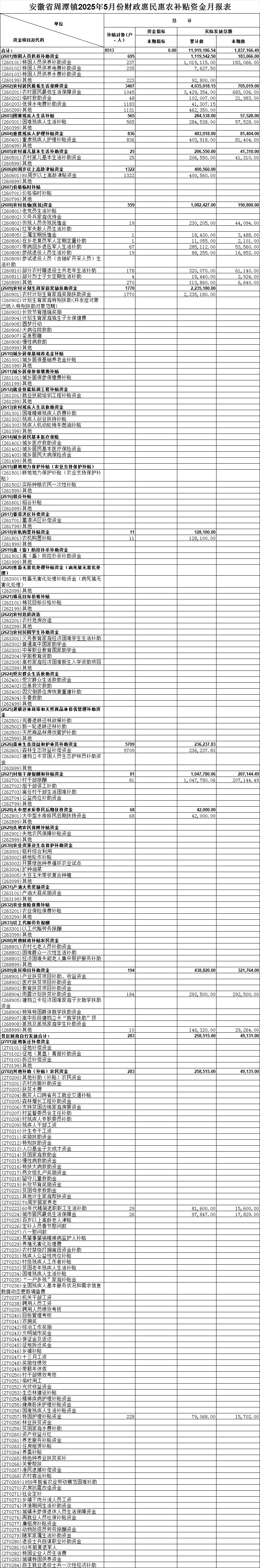 安徽省周潭镇2025年5月份财政惠民惠农补贴资金月报表
