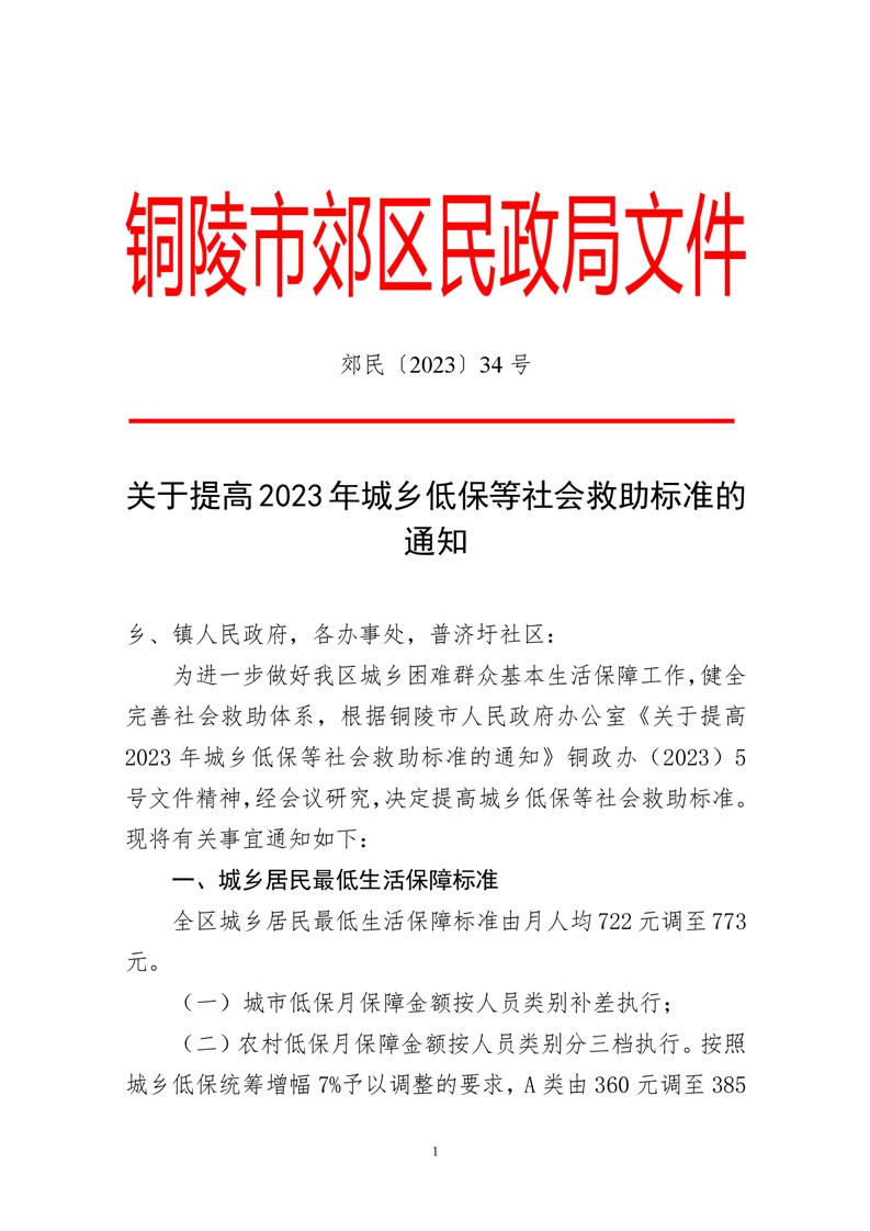 郊区民政局34号关于提高2023年城乡低保、特困供养等社会救助标准的通知